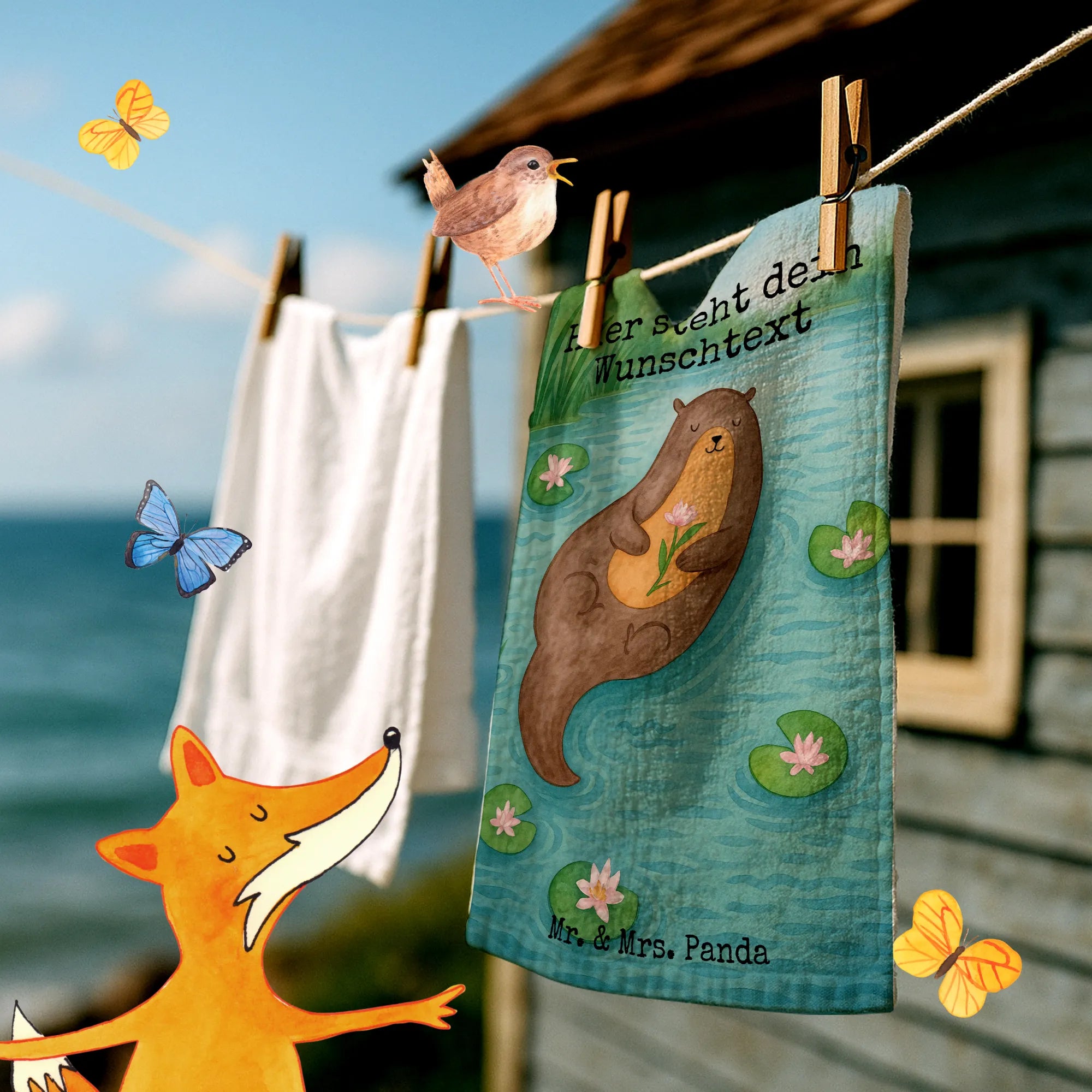 Personalisiertes Gästehandtuch Otter Seerose Design