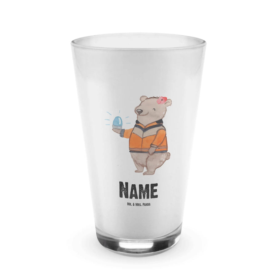 Das personalisierte Glas mit dem Motiv 'Rettungssanitäterin mit Herz' aus der einzigartigen Berufe Kollektion von Mr. & Mrs. Panda ist das perfekte Geschenk für alle engagierten Rettungssanitäterinnen.