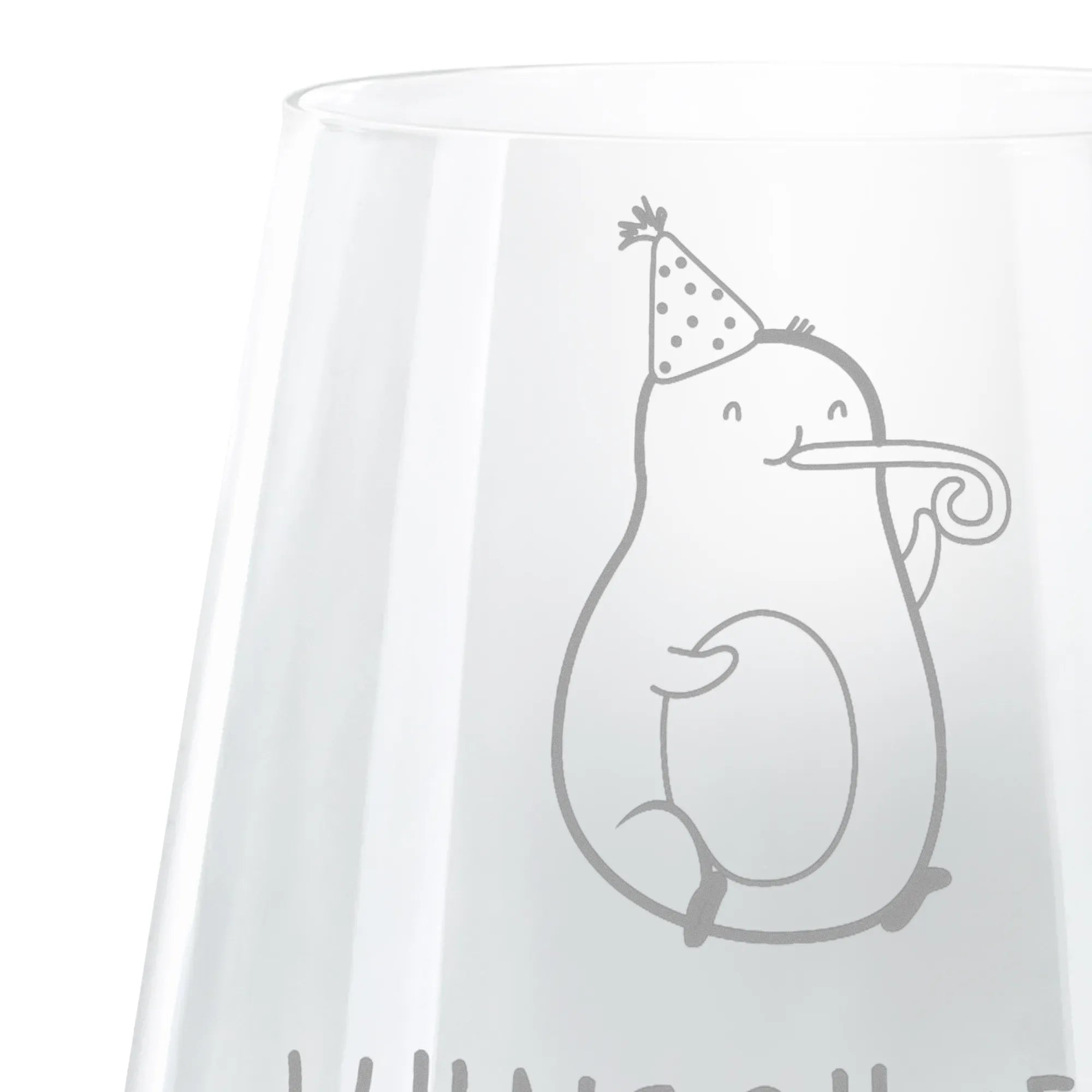 Das personalisierte Gravur Windlicht Avocado Partyhupe von Mr. & Mrs. Panda ist ein ganz besonderes Geschenk, das Freude und gute Laune verbreitet. Mit seiner charmanten Darstellung einer süßen Avocado, die einen Partyhut trägt und in eine Partypfeife pustet, ist dieses Windlicht der perfekte Begleiter für jede Feierlichkeit.
