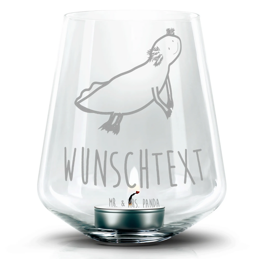Personalisiertes Gravur Windlicht Axolotl Schwimmen