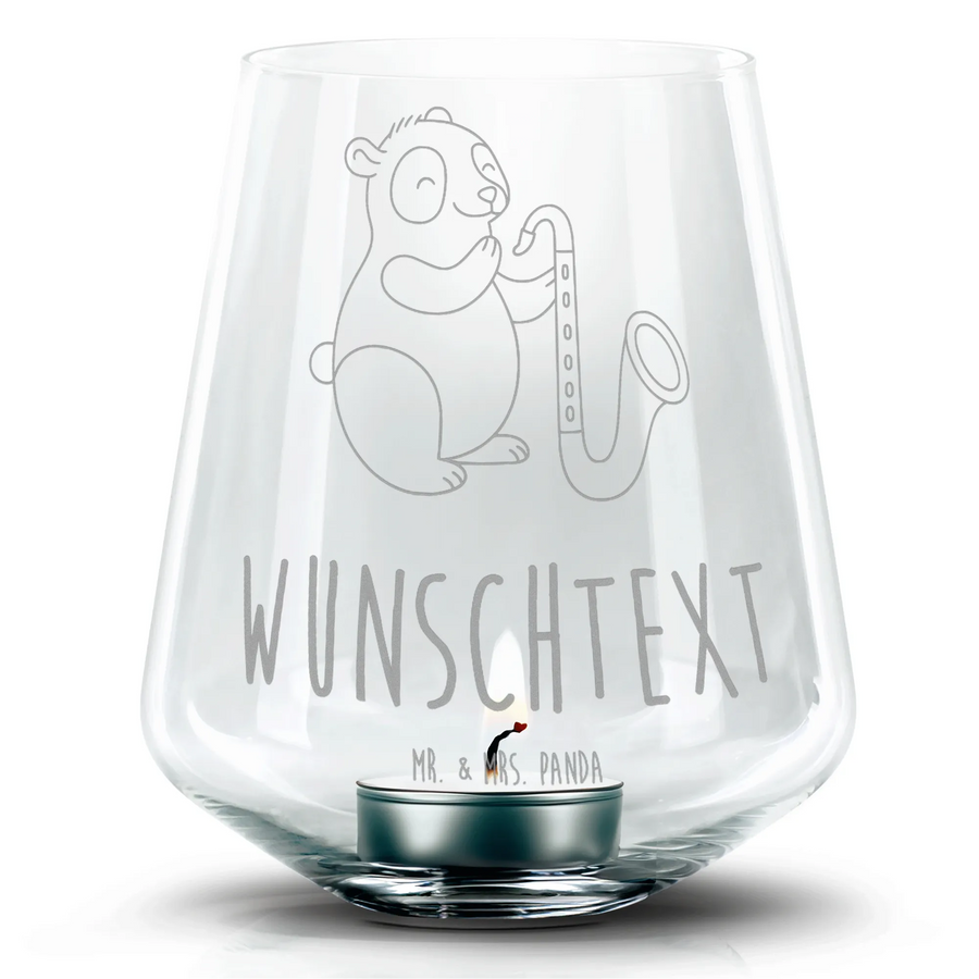 Zauberhaftes personalisiertes Gravur Windlicht „Panda Bassklarinette“