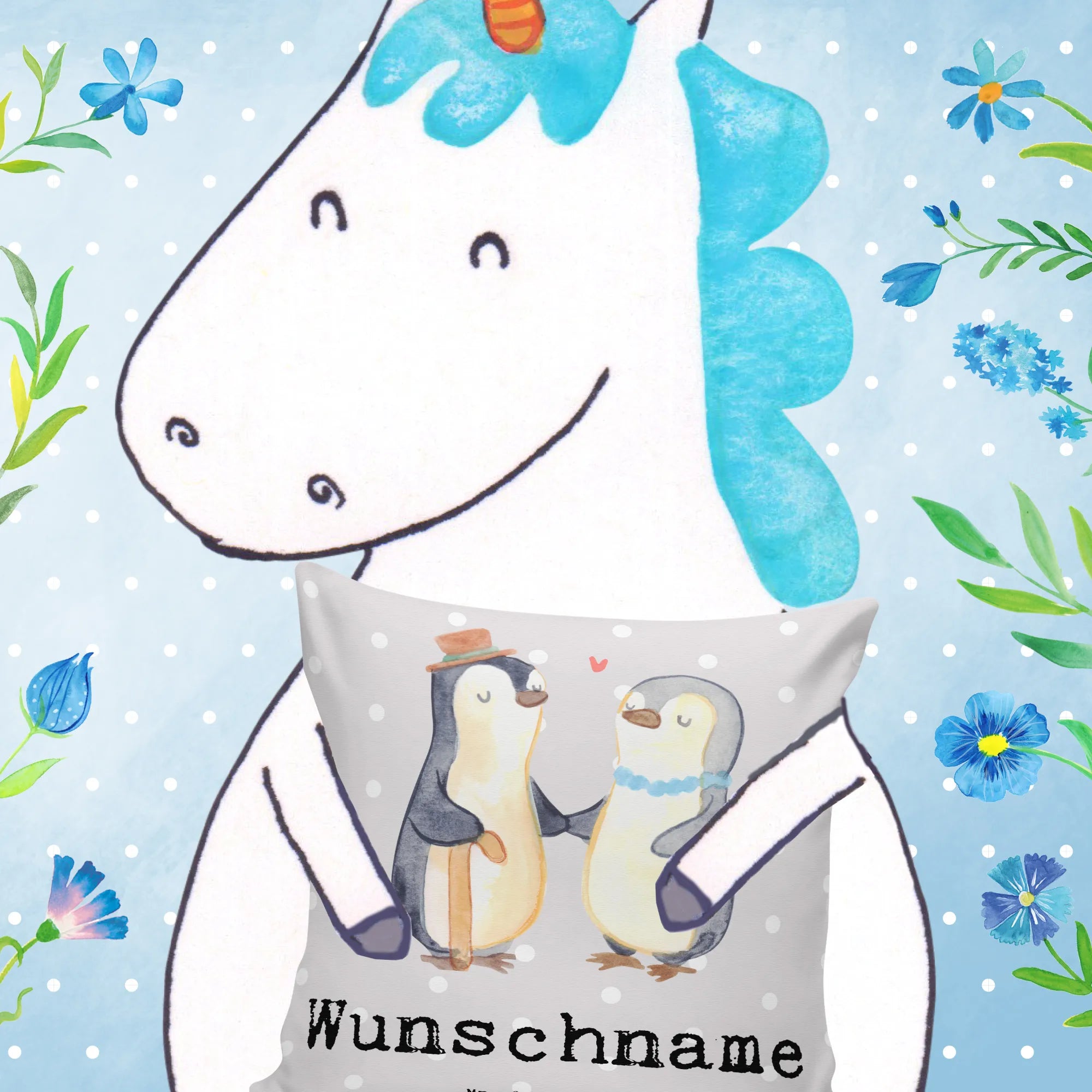 🐼 Gestalte dein Kissen mit Namen oder Datum.