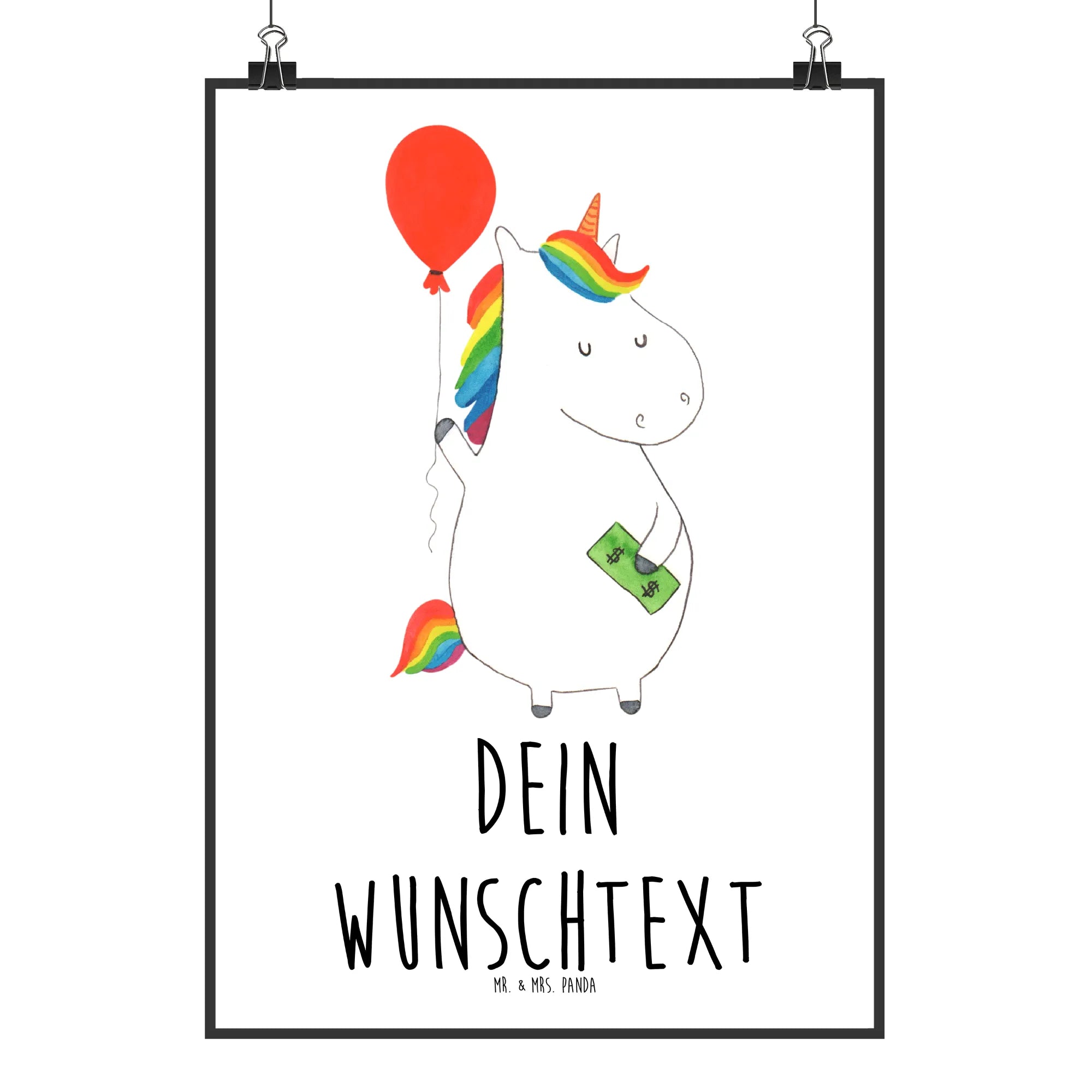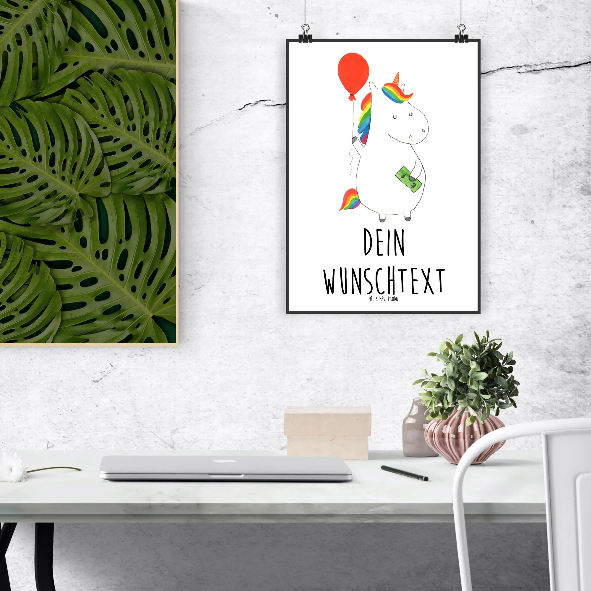 Das personalisierte Poster mit dem bezaubernden Motiv "Einhorn Luftballon" von Mr. & Mrs. Panda ist das perfekte Geschenk für kleine Traumtänzer und Einhornliebhaber!