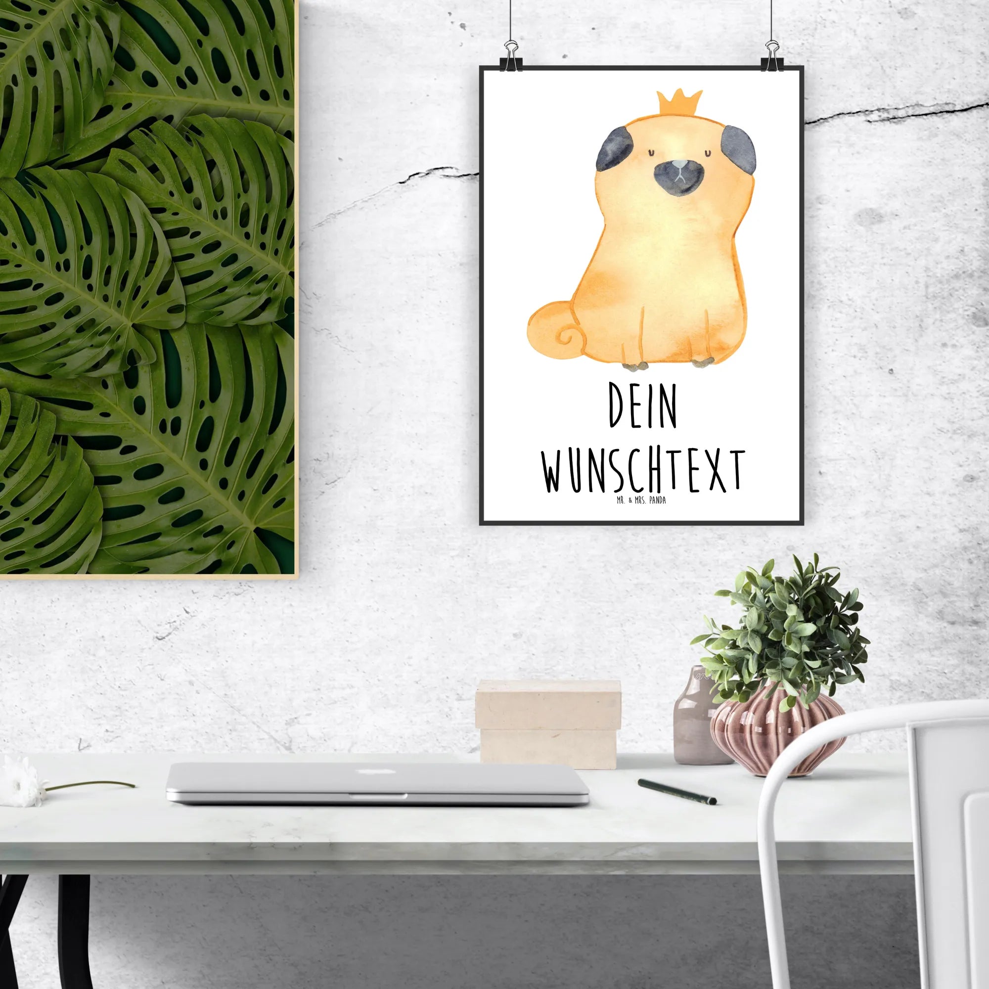Personalisiertes Poster Mops Krone - DIN A0 - Weiß
