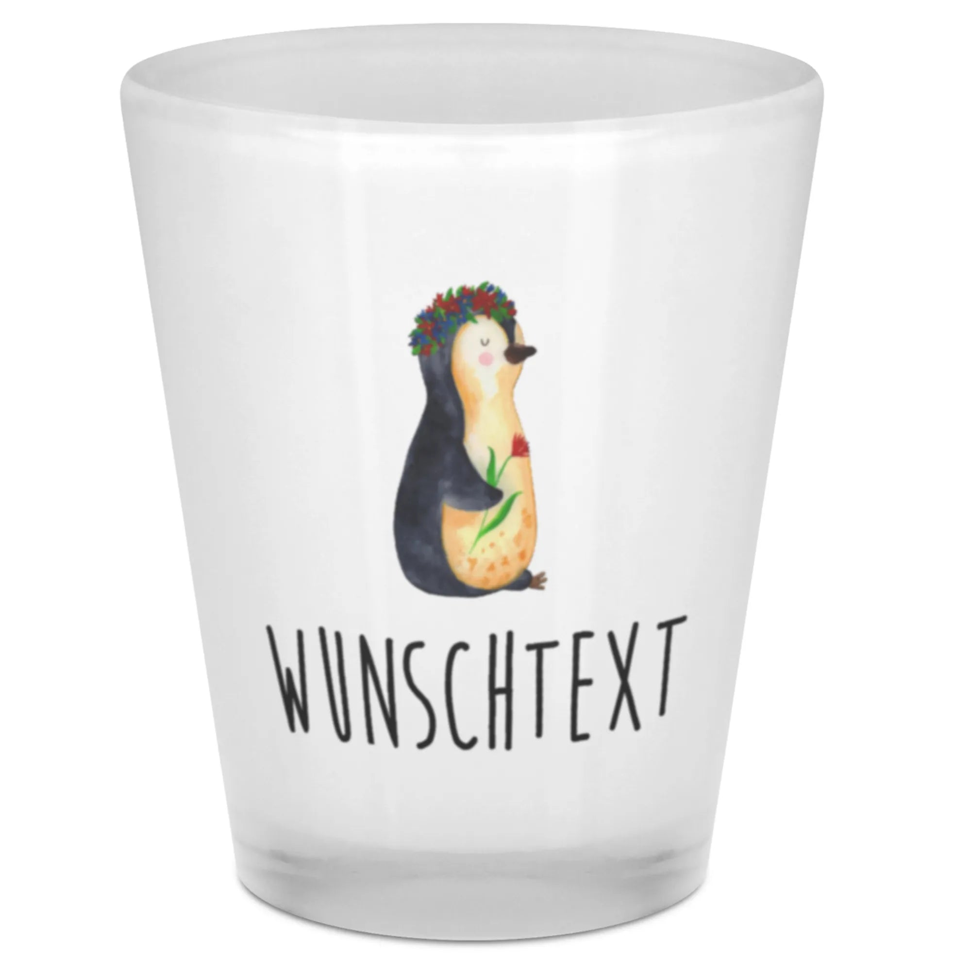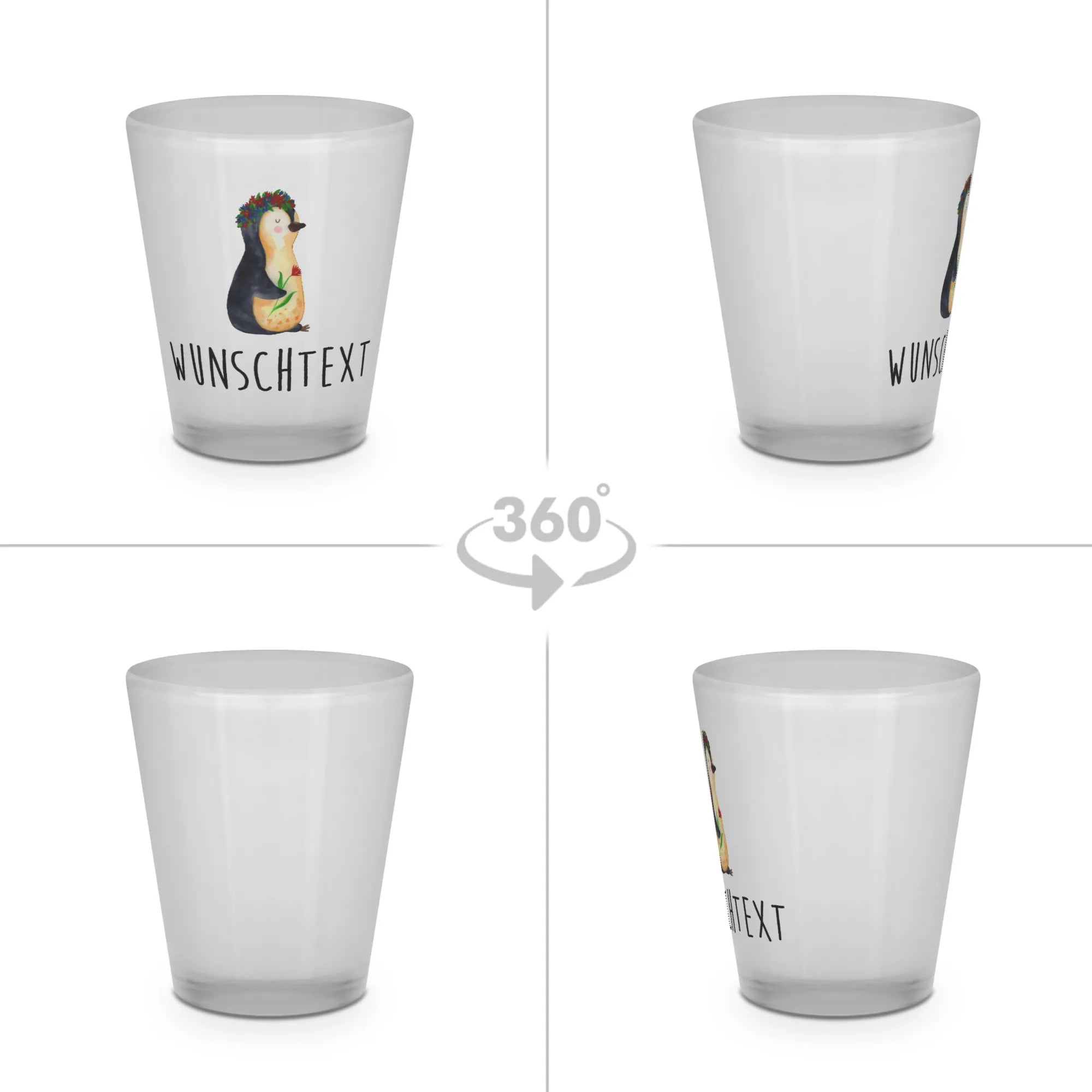 Mit dem süßen Pinguin, der einen Blumenkranz trägt, sorgt es für gute Laune und ein Lächeln im Gesicht. Die individuelle Personalisierung ist das Highlight dieses Glases. Du kannst deinem Schnapsglas ganz einfach deinen Wunschnamen oder einen ganz persönlichen Text hinzufügen – so wird es zu einem einzigartigen Unikat!