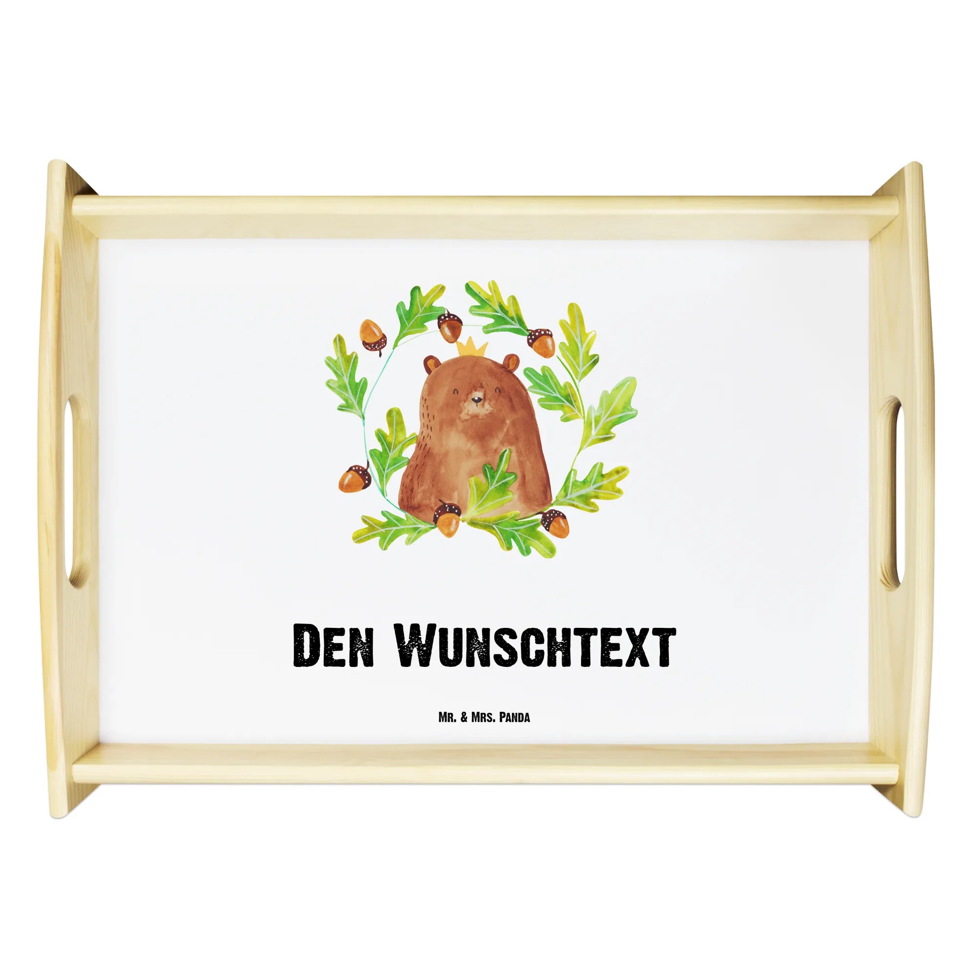 Das personalisierte Serviertablett Bär König von Mr. & Mrs. Panda ist das perfekte Geschenk für jeden Papa und für alle, die Bären lieben. Hergestellt aus hochwertigem lasiertem Echtholz, vereint es Funktionalität mit liebevollem Design.