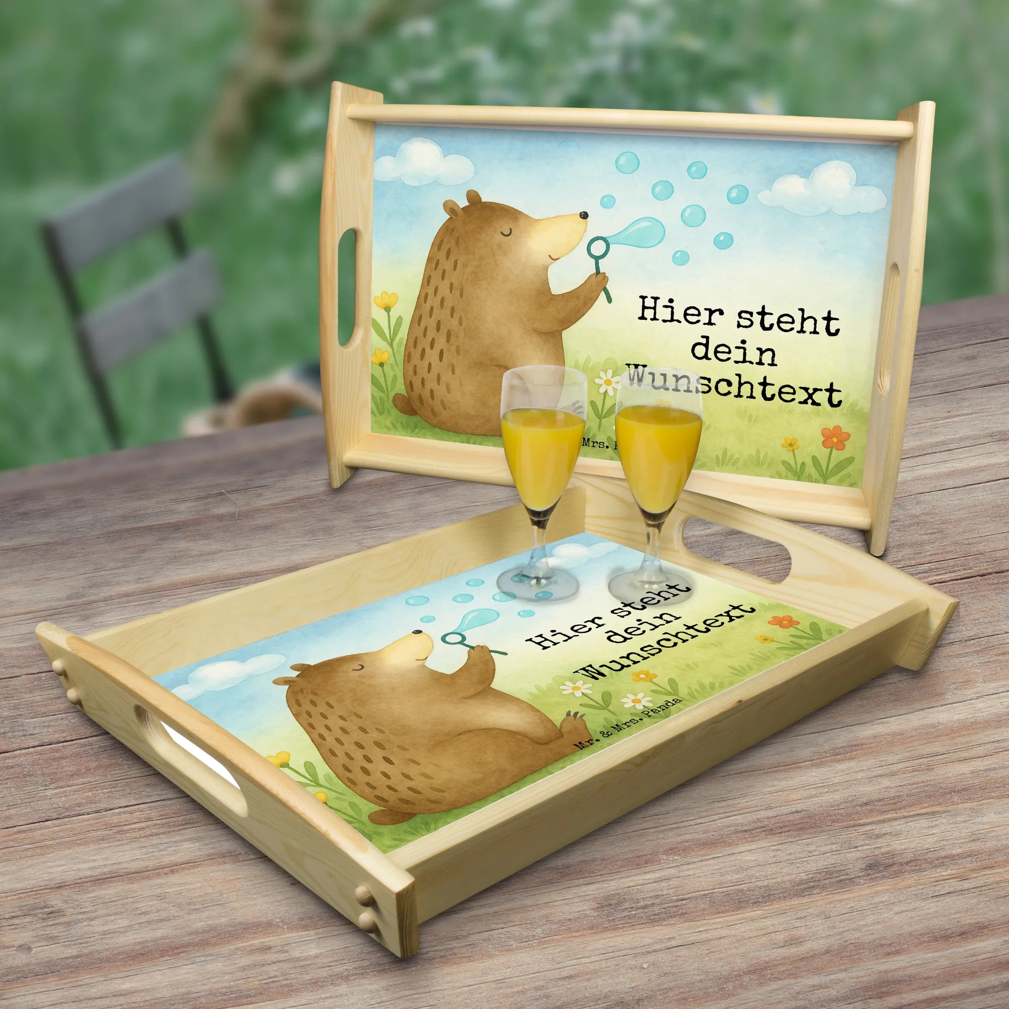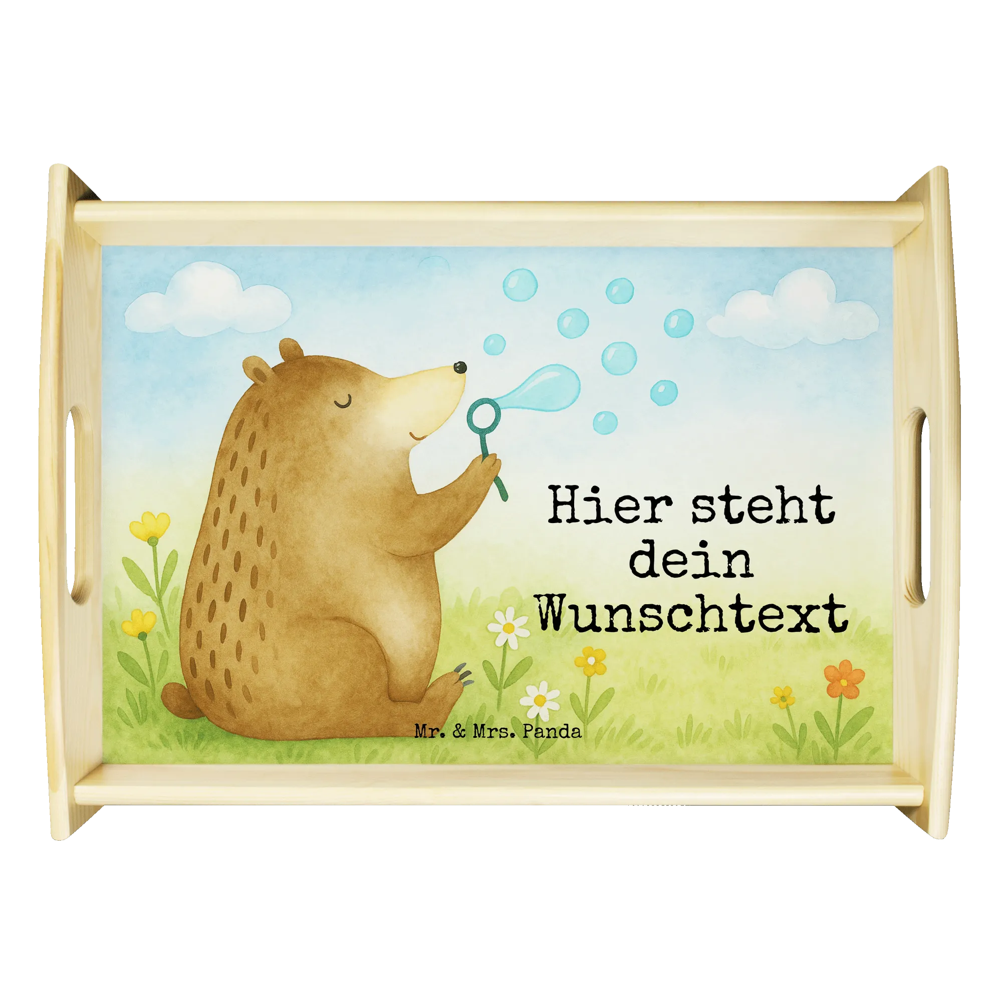 Personalisiertes Serviertablett Bär Seifenblasen Design – Mr. & Mrs. Panda