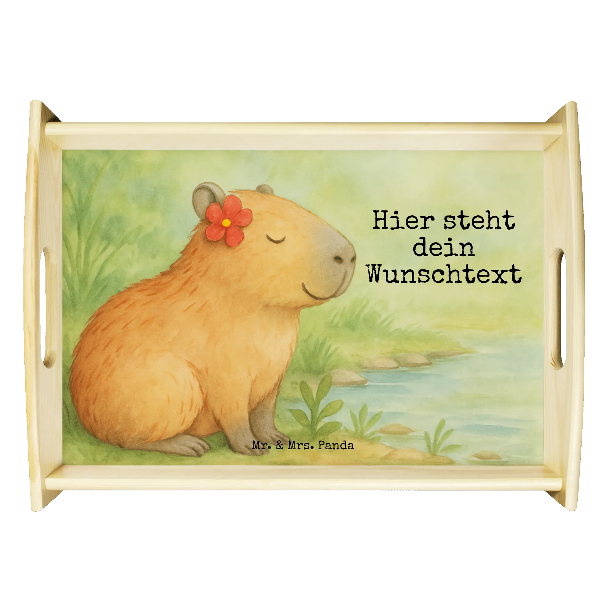 Personalisiertes Serviertablett Capybara Blume Design – Mr. & Mrs. Panda