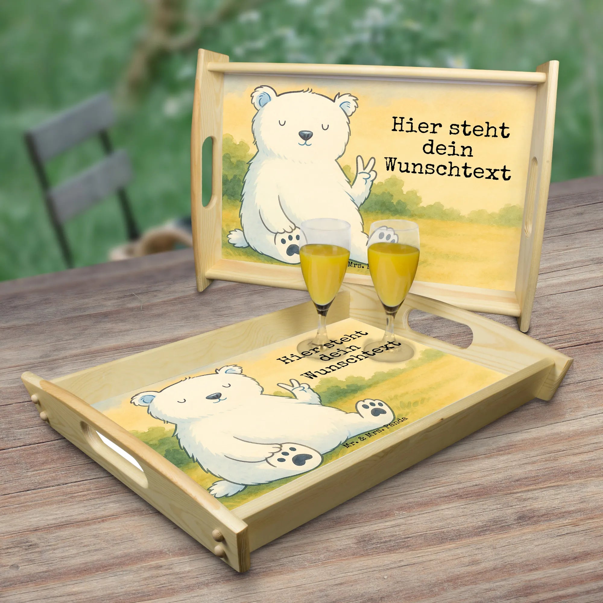 Mache dein Frühstück oder deinen Snack zu einem Highlight mit dem personalisierten Serviertablett von Mr. & Mrs. Panda! Es hat die Maße von 480 mm x 365 mm x 65 mm und wiegt 925 g – perfekt, um alles sicher und stilvoll zu transportieren. Hergestellt aus hochwertigem lasiertem Echtholz, strahlt es Wärme und Gemütlichkeit aus. Die individuelle Lasur wird dazu genutzt, um deinen persönlichen Text oder Namen zu verewigen – so wird jedes Tablett einzigartig! Das Design mit liebevollen Motiven und Sprüchen gibt dem Tablett eine fröhliche Note, während die seitlichen Griffmulden das Tragen einfacher machen. Zudem sorgen die Anti-Rutsch Pads auf der Unterseite für einen sicheren Halt, egal ob im Bett oder auf dem Tisch. Die Oberfläche ist kratzfest und leicht zu reinigen – einfach mit einem feuchten Tuch abwischbar. Bitte nicht einweichen und beachte, dass die Anfertigung eine gewisse Zeit in Anspruch nimmt, da jedes Stück mit viel Liebe gefertigt wird.