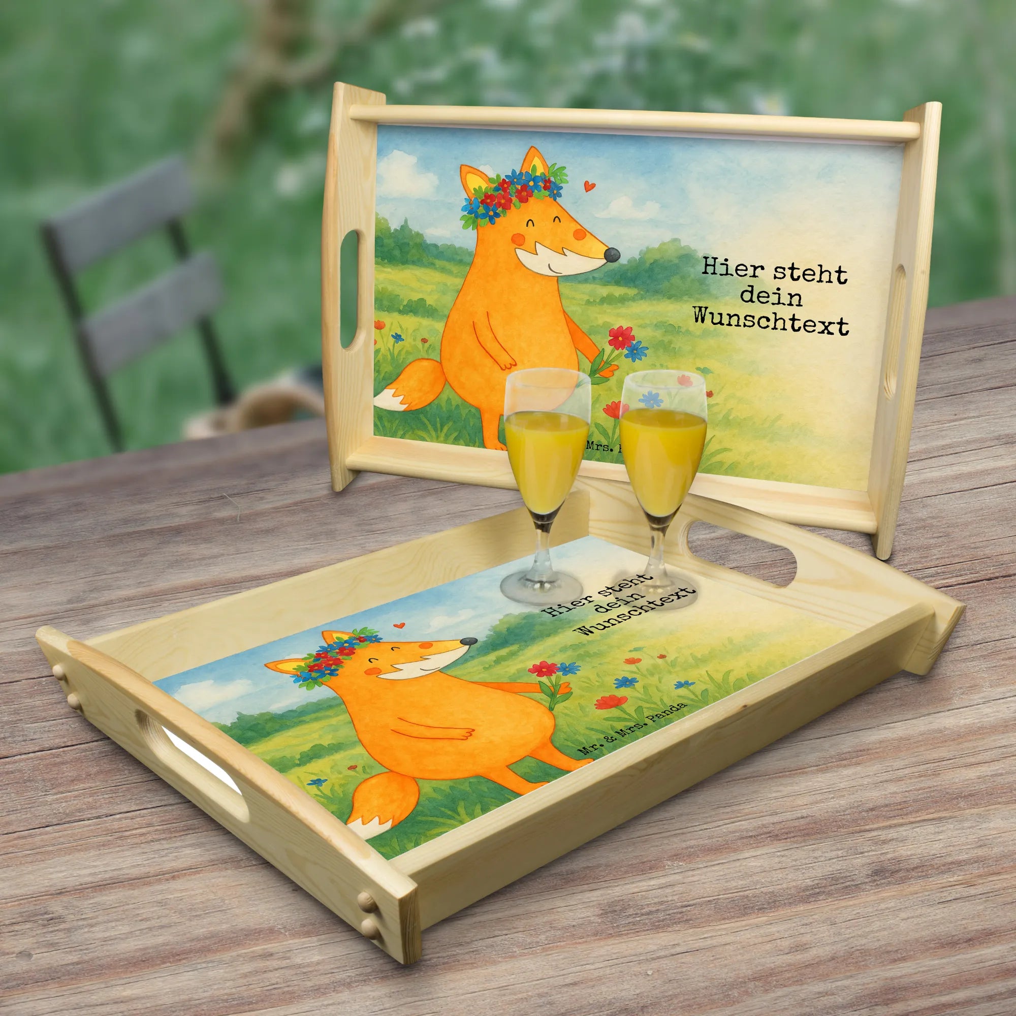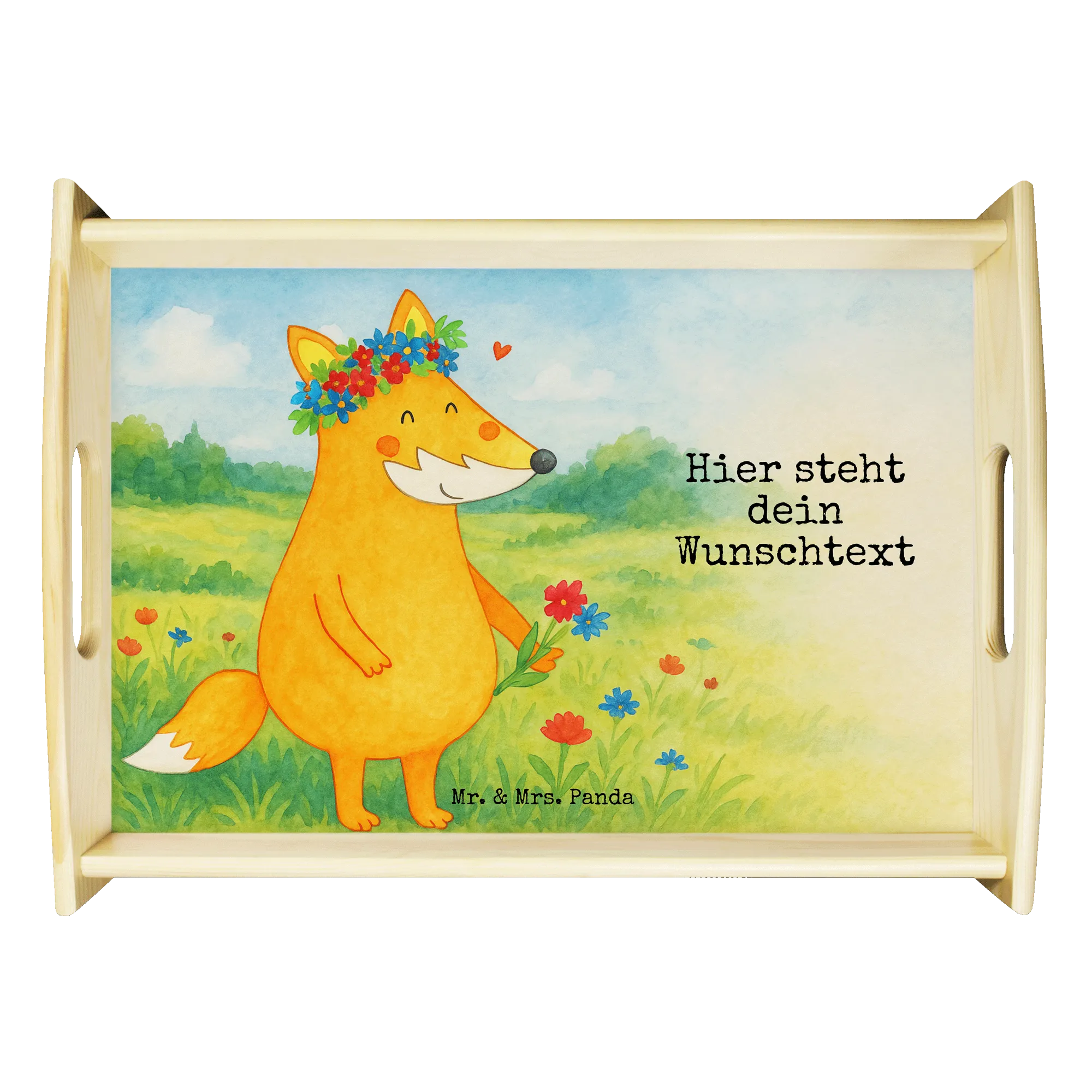 Personalisiertes Serviertablett Fuchs Blumen Design