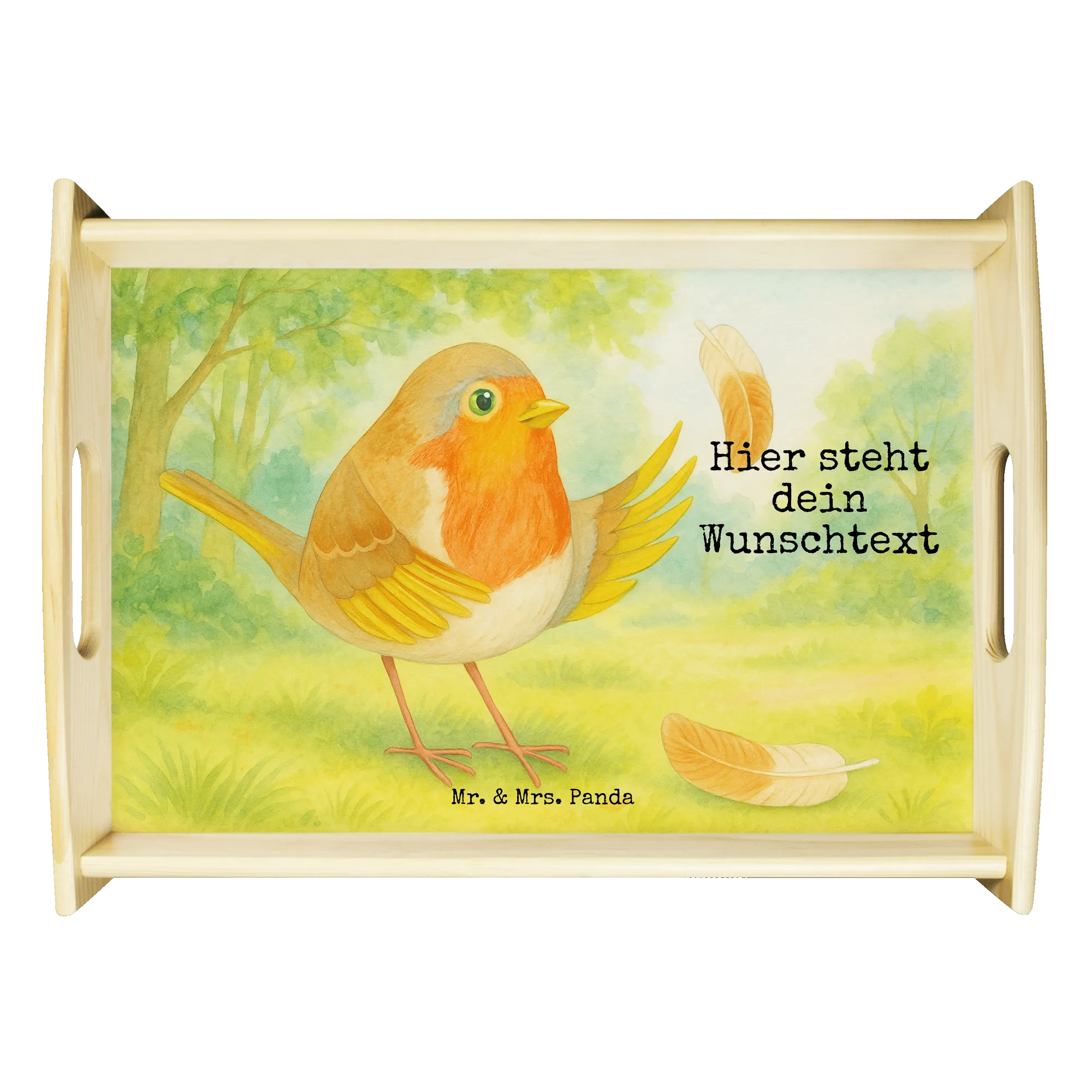 Personalisiertes Serviertablett Rotkehlchen Federn Design