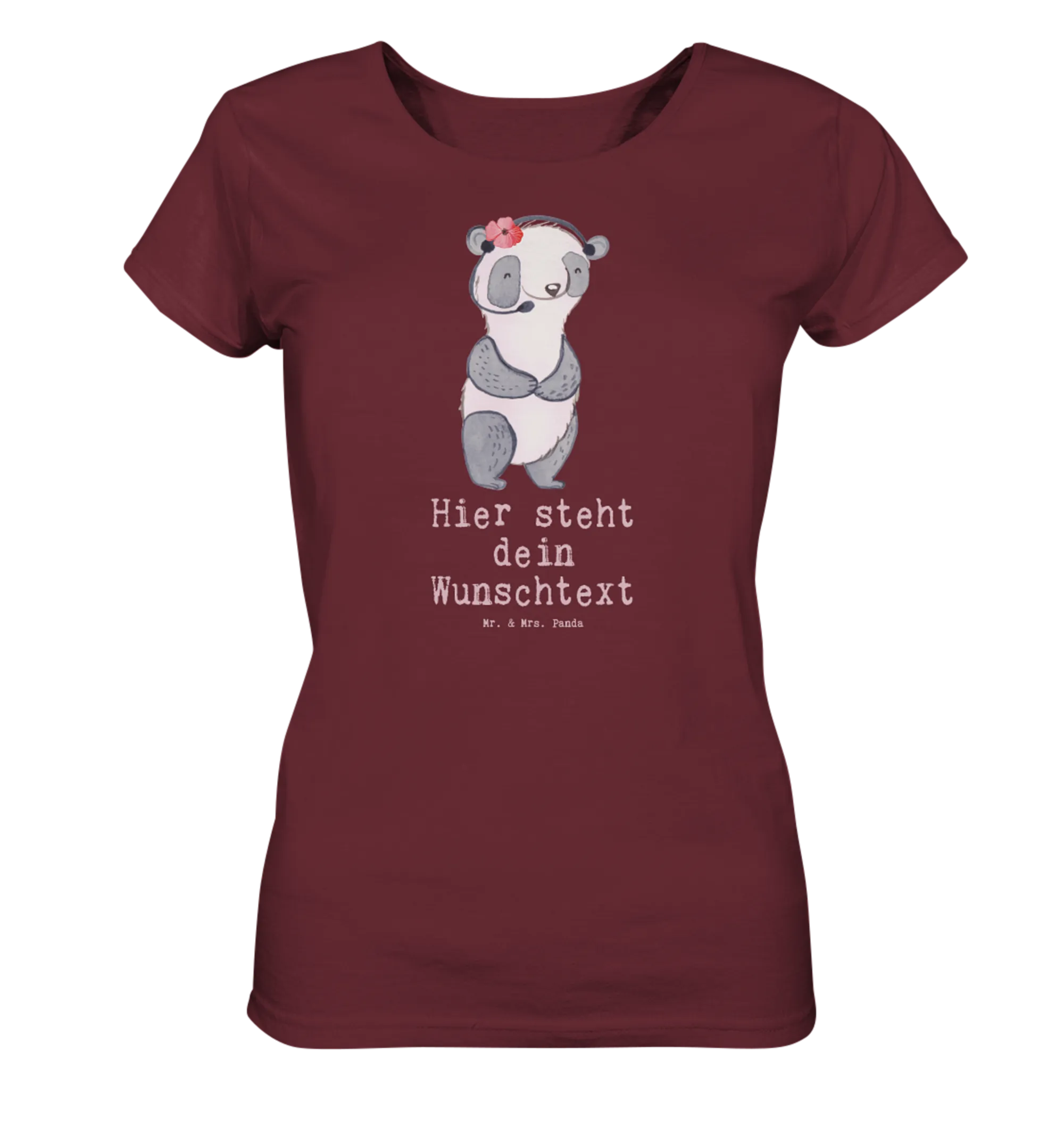 Das süße, feminine Design mit einem lächelnden Panda, der ein Headset trägt, verbreitet Freude und zeigt den Stolz auf den Beruf.