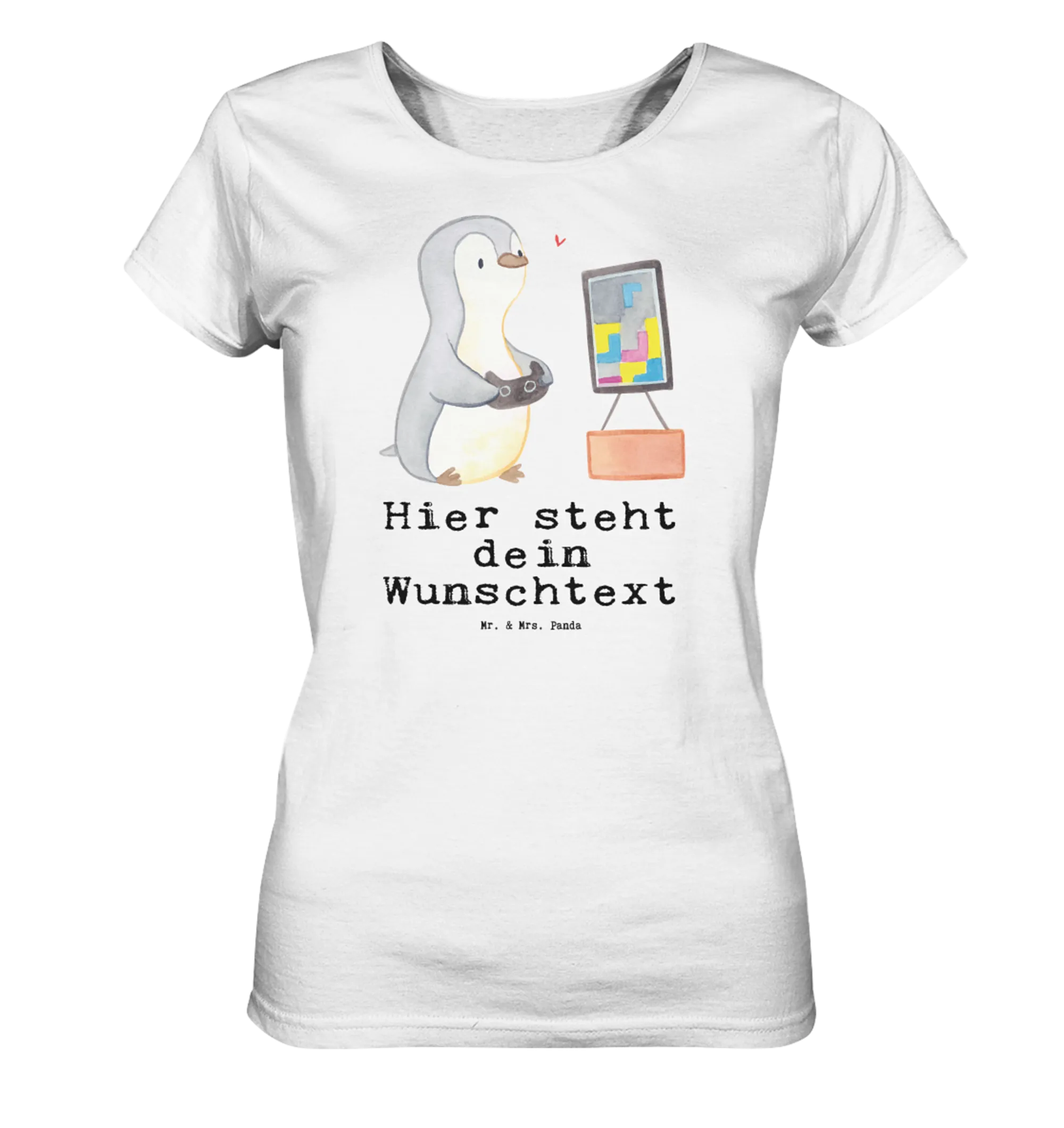 Entdecke unser liebevoll gestaltetes Personalisiertes Shirt Damen mit dem süßen Motiv "Pinguin Zocken Tage" aus der Kollektion Hobby & Sport von Mr. & Mrs. Panda!