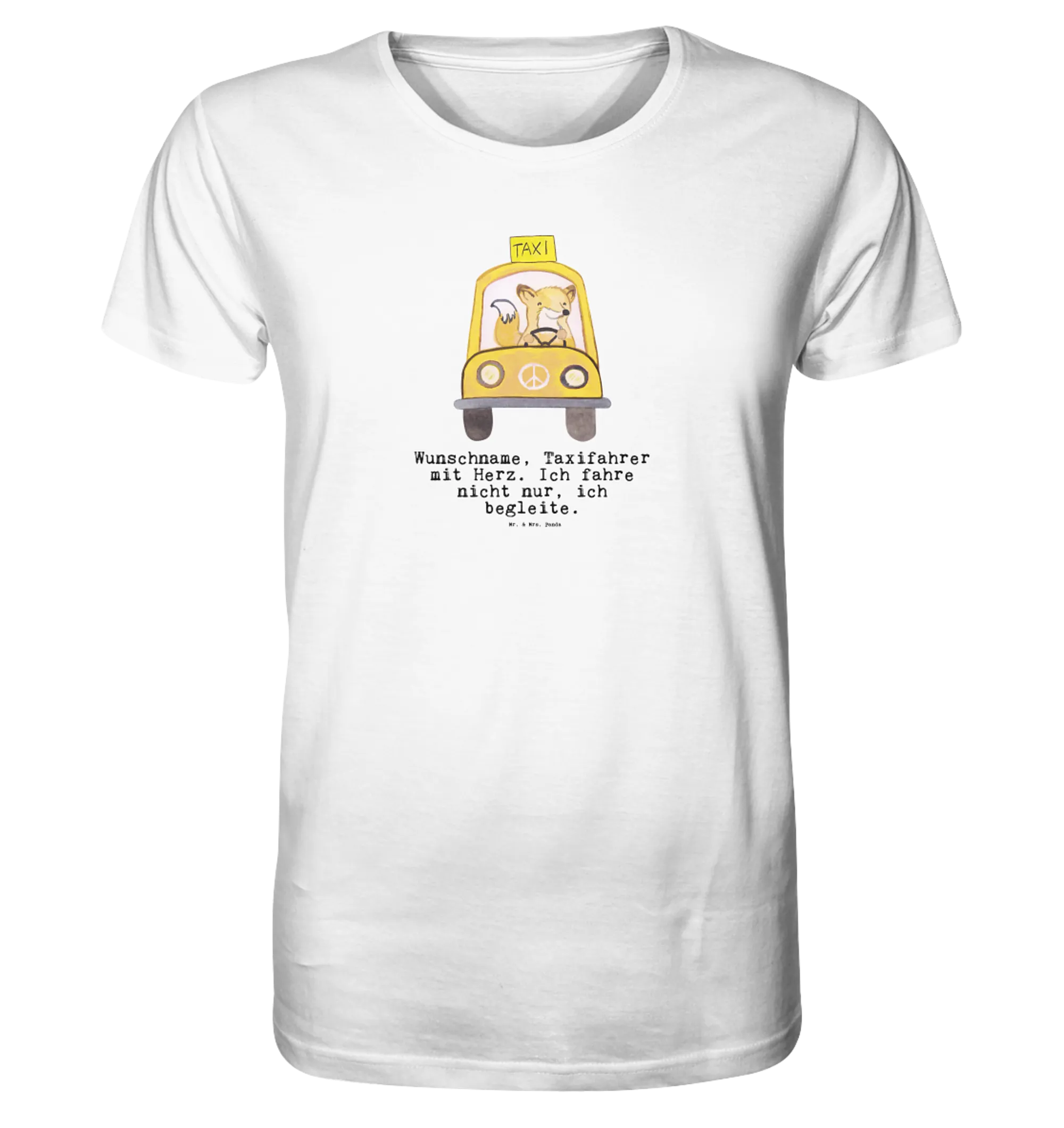Das personalisierte Shirt "Taxifahrer mit Herz" aus der einzigartigen Berufe Kollektion von Mr. & Mrs. Panda ist der perfekte Begleiter für jeden Taxifahrer und eine großartige Geschenkidee für diverse Anlässe. Egal ob zum Geburtstagsfest, als lustiges T-Shirt für den Junggesellenabschied oder zur Feier eines Jubiläums, dieses Shirt bringt Freude und ein Lächeln ins Gesicht. Bringe deinen Freunden, Kollegen oder Familienmitgliedern ein tolles Dankeschön mit diesem T-Shirt, das nicht nur stylisch, sondern auch super angenehm zu tragen ist, denn es besteht aus 100% Baumwolle und hat das Öko-Siegel.
