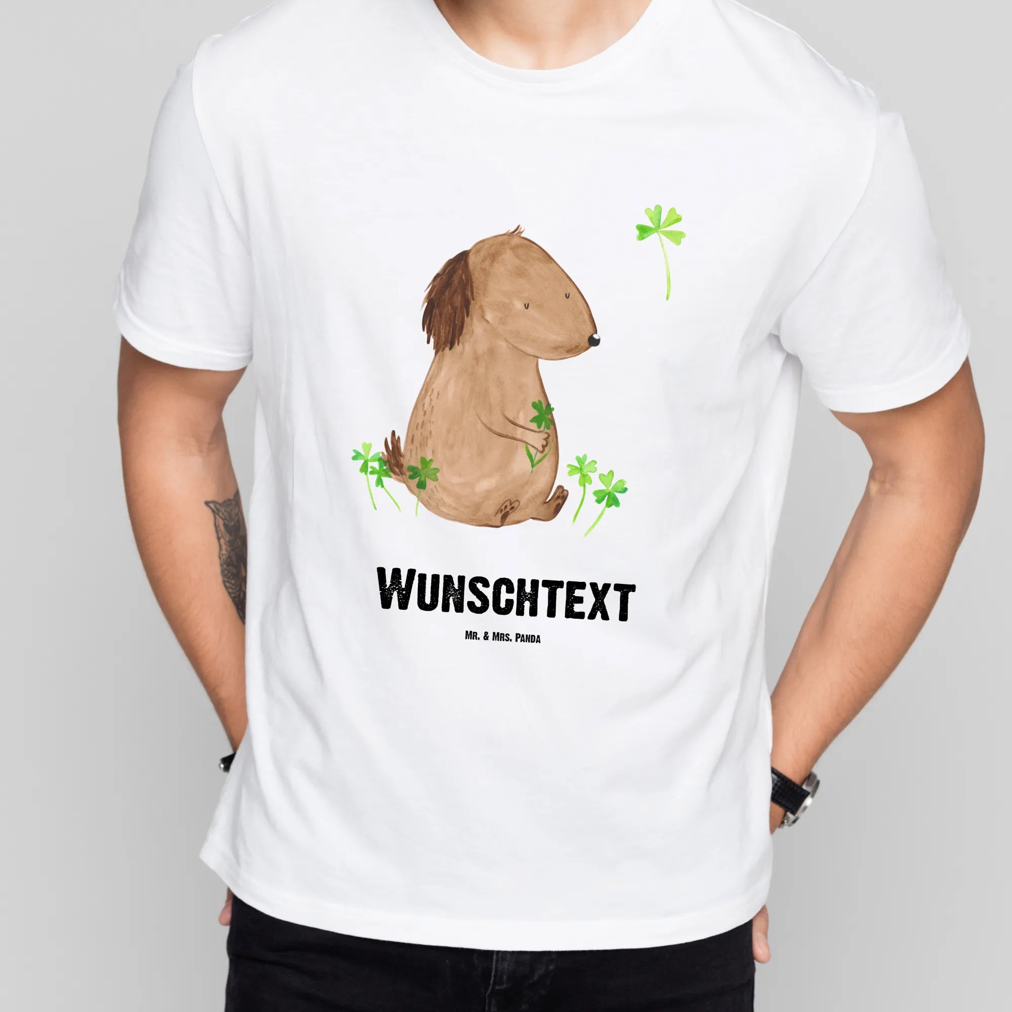 Größe L Personalisiertes T-Shirt „Hund Kleeblatt" – dein kleiner Glücksbringer von Mr. & Mrs. Panda
