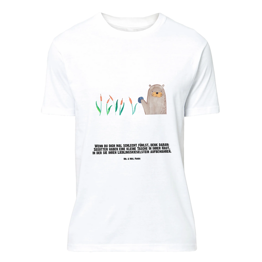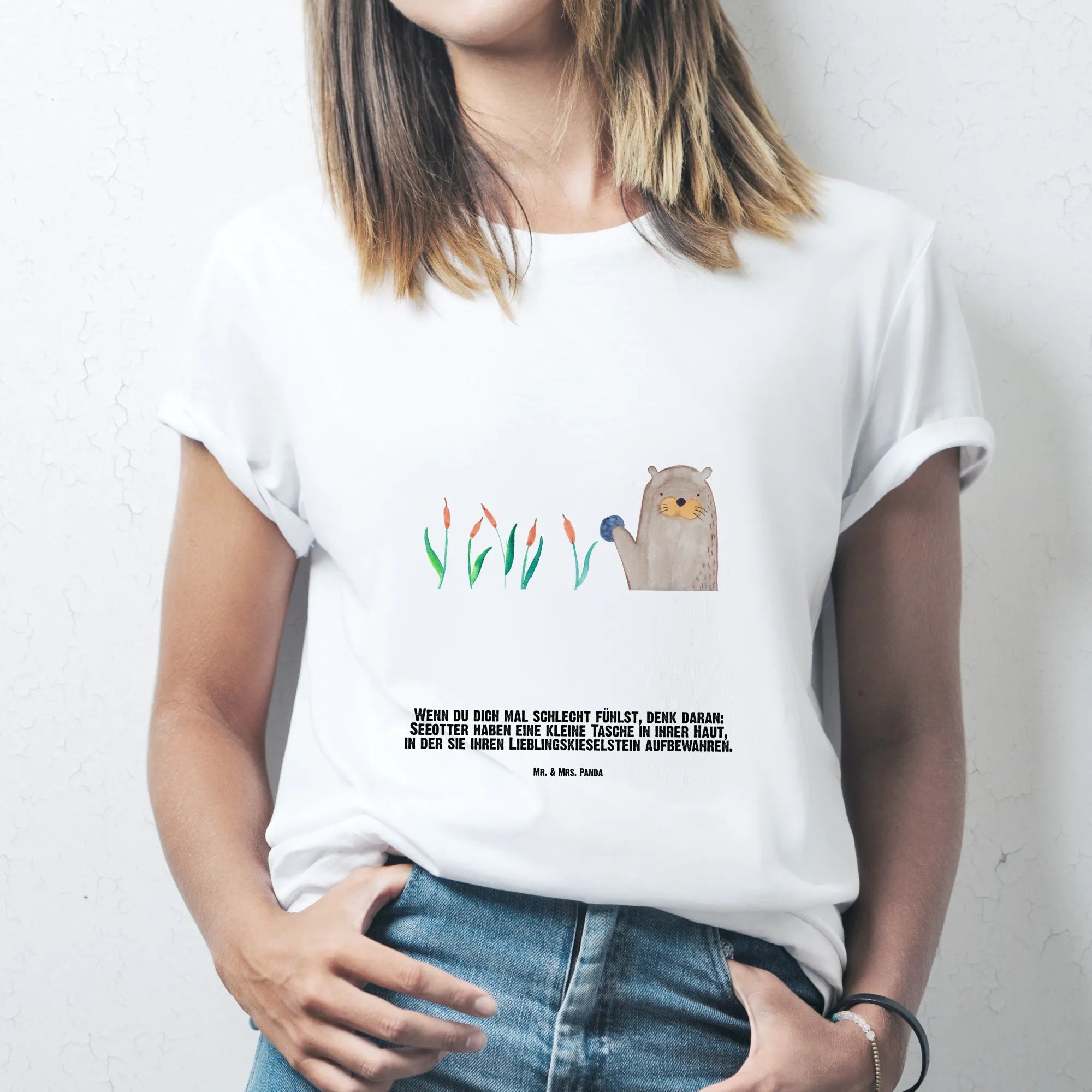 Das Motto des T-Shirts lautet: "Wenn du dich mal schlecht fühlst, denk daran: Seeotter haben eine kleine Tasche in ihrer Haut, in der sie ihren Lieblingskieselstein aufbewahren." Dieses Zitat ist nicht nur niedlich, sondern regt auch dazu an, die eigenen Schätze im Leben zu schätzen.