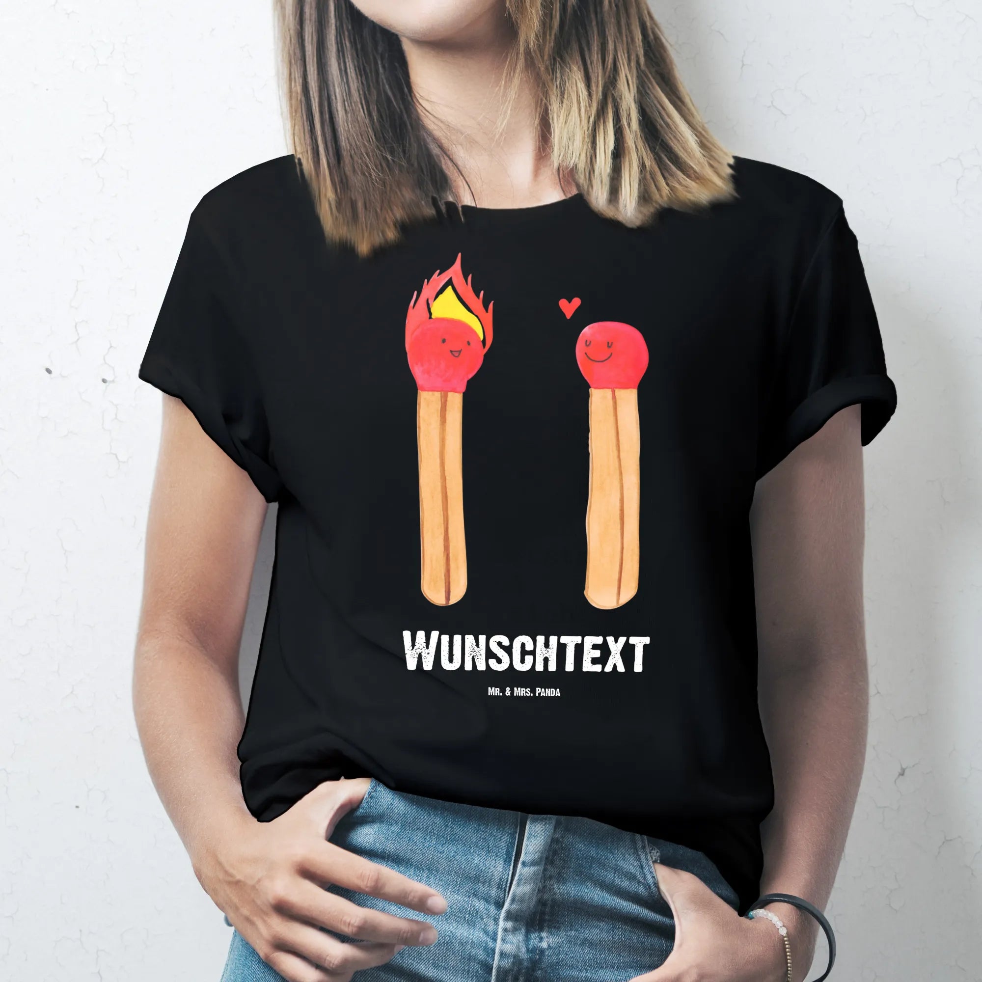 Das Größe L Personalisiertes T-Shirt mit dem niedlichen Motiv "Streichhölzer" aus der wunderbaren Sammlung "Liebe" von Mr. & Mrs. Panda ist der perfekte Geschenkartikel für alle Verliebten!