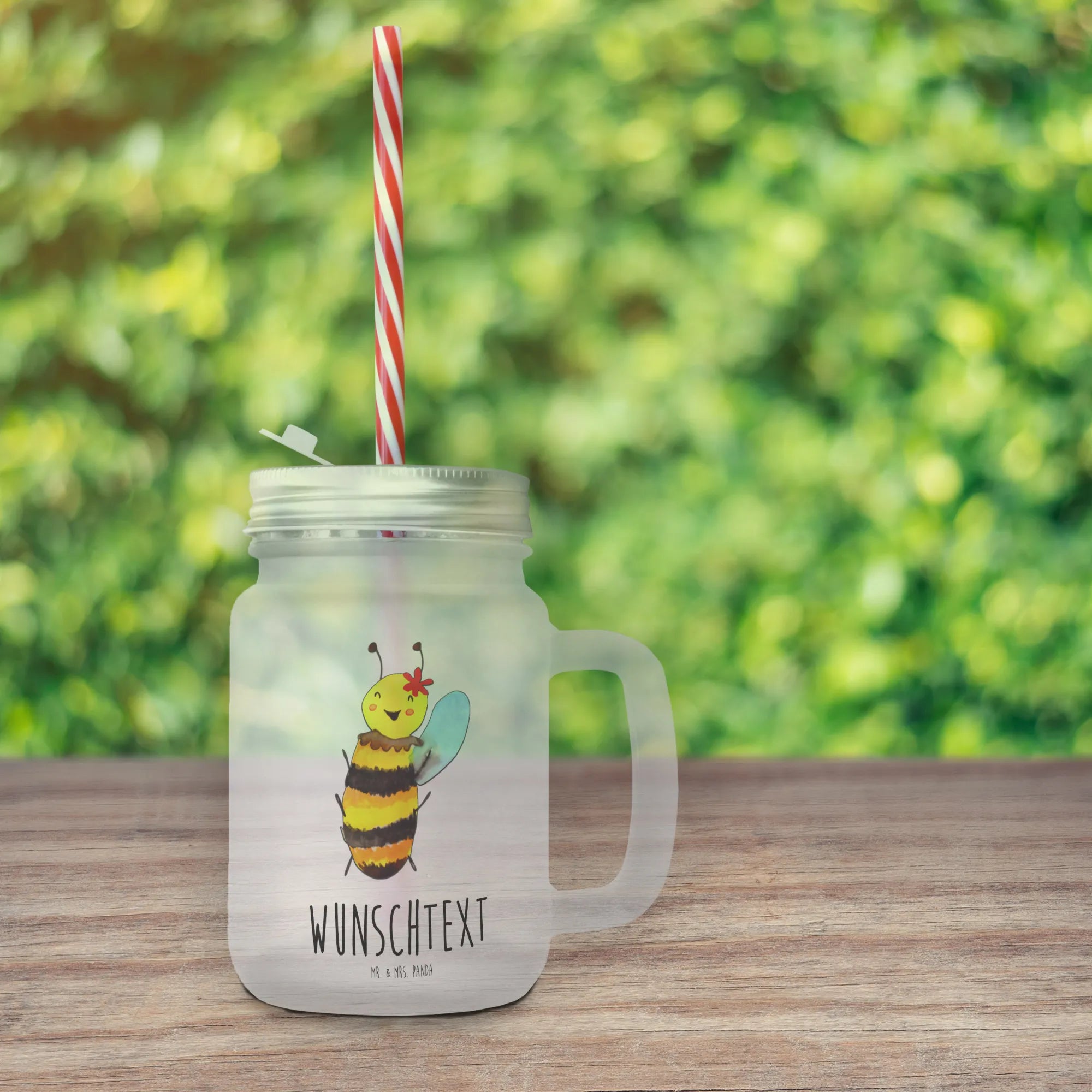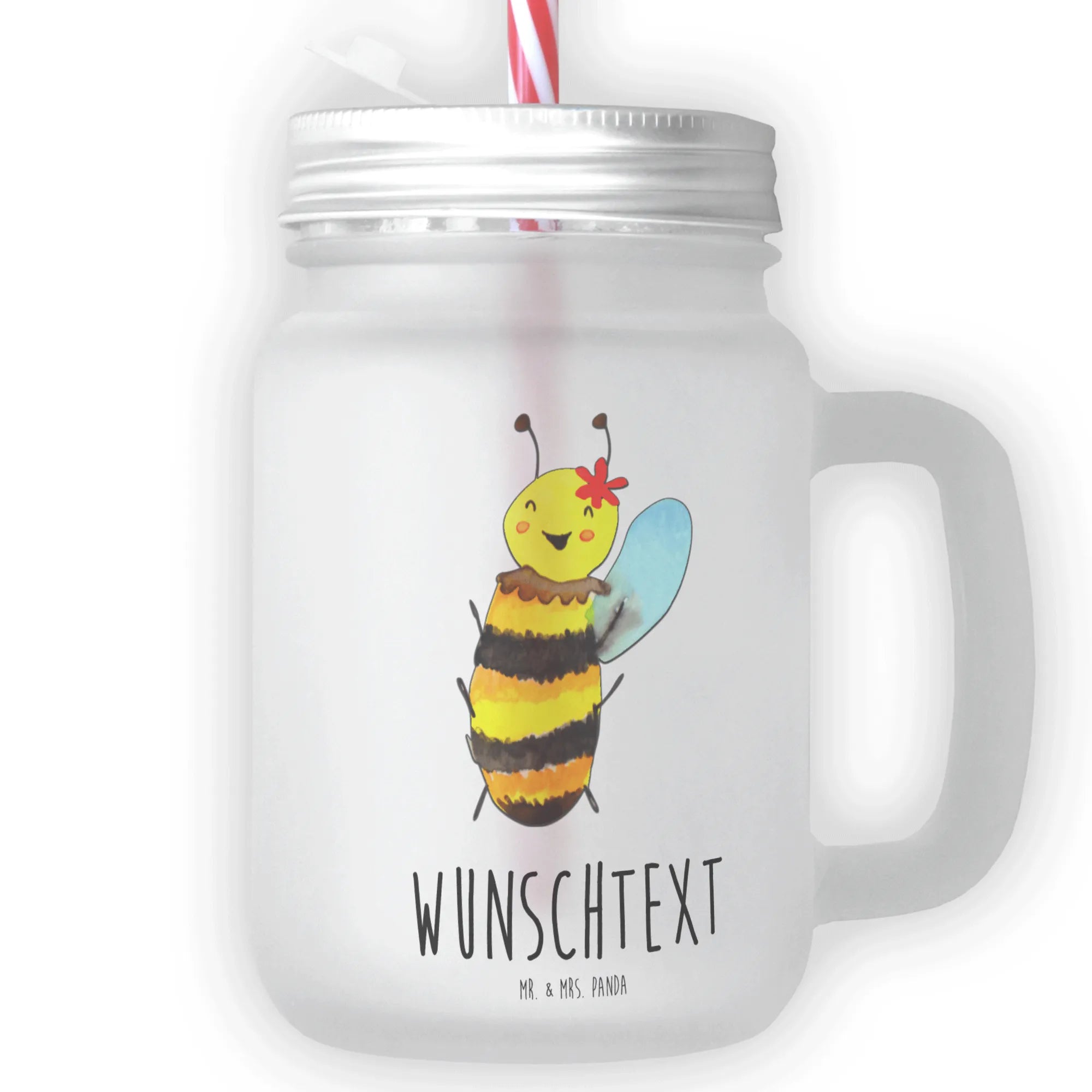 Personalisiertes Trinkglas Mason Jar Biene Happy