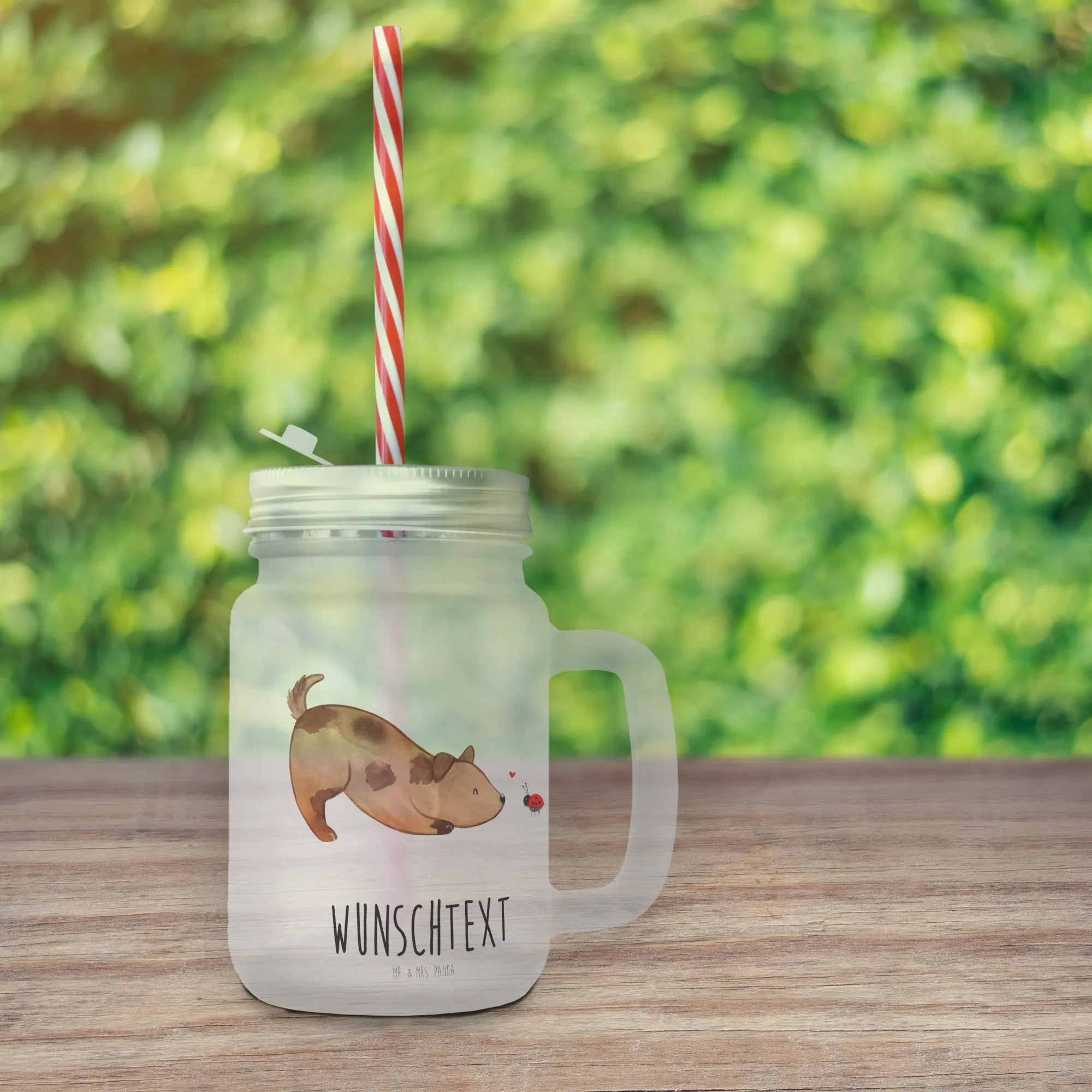 Personalisiertes Trinkglas Mason Jar Hund Marienkäfer