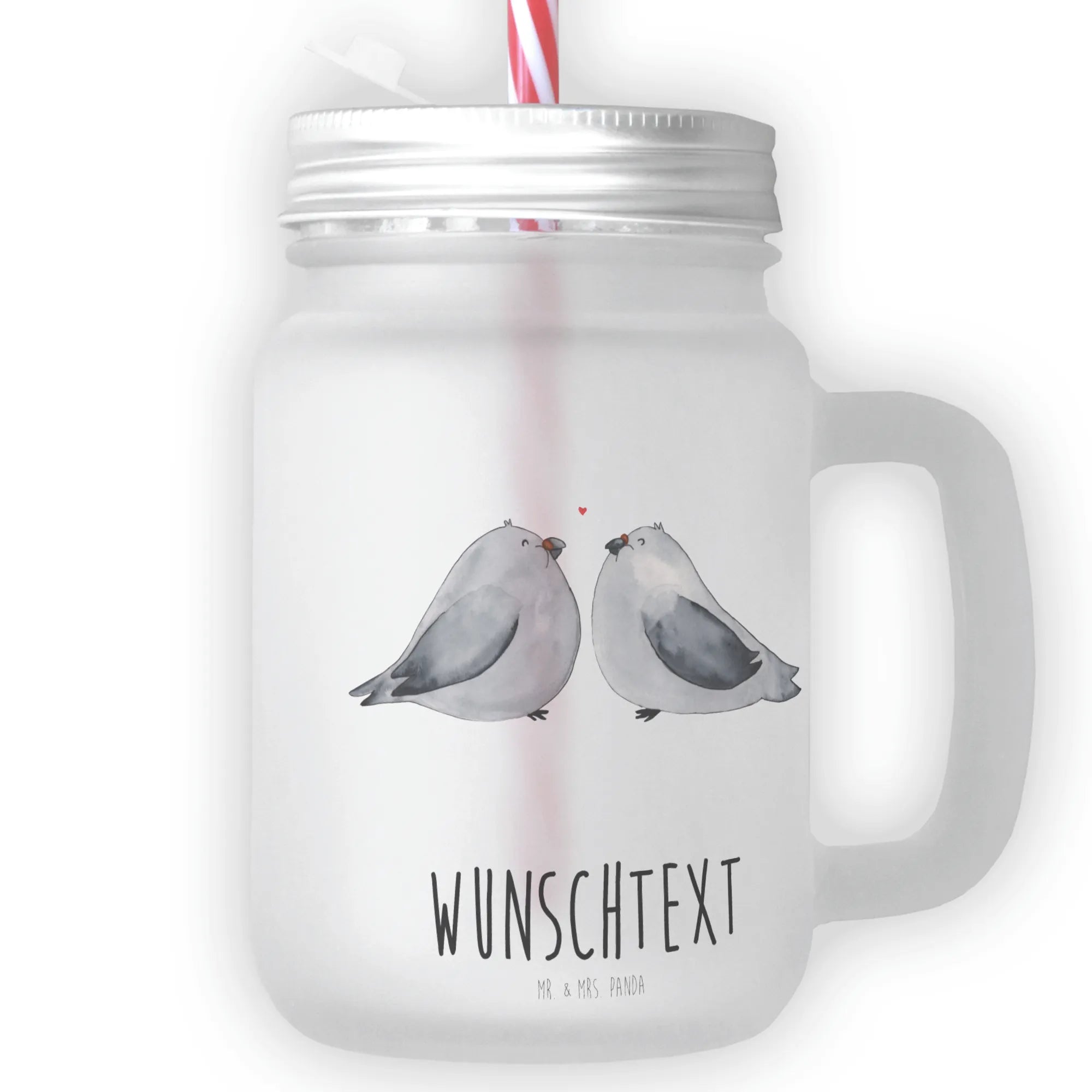 Personalisiertes Trinkglas Mason Jar Turteltauben Liebe