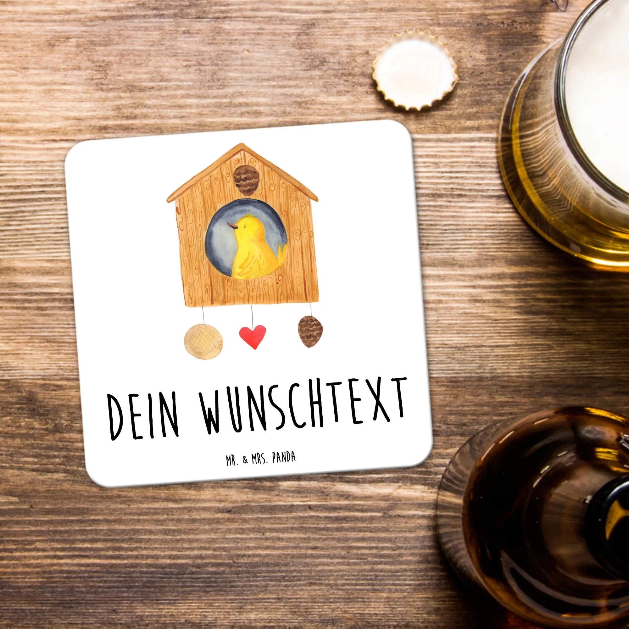 Verschenke Freude mit unseren personalisierten Untersetzern im Design Vogelhaus aus der Small World Kollektion von Mr. & Mrs. Panda!