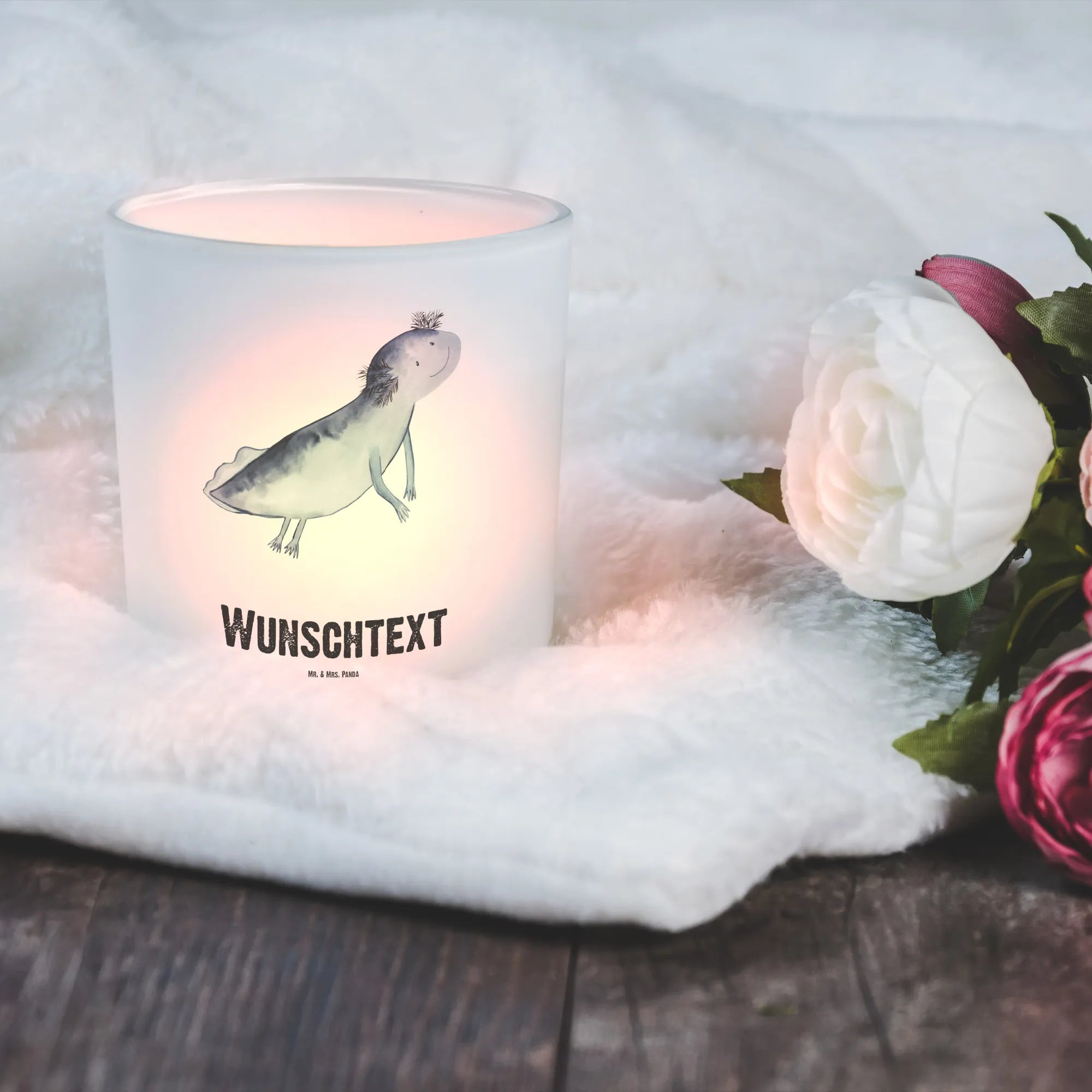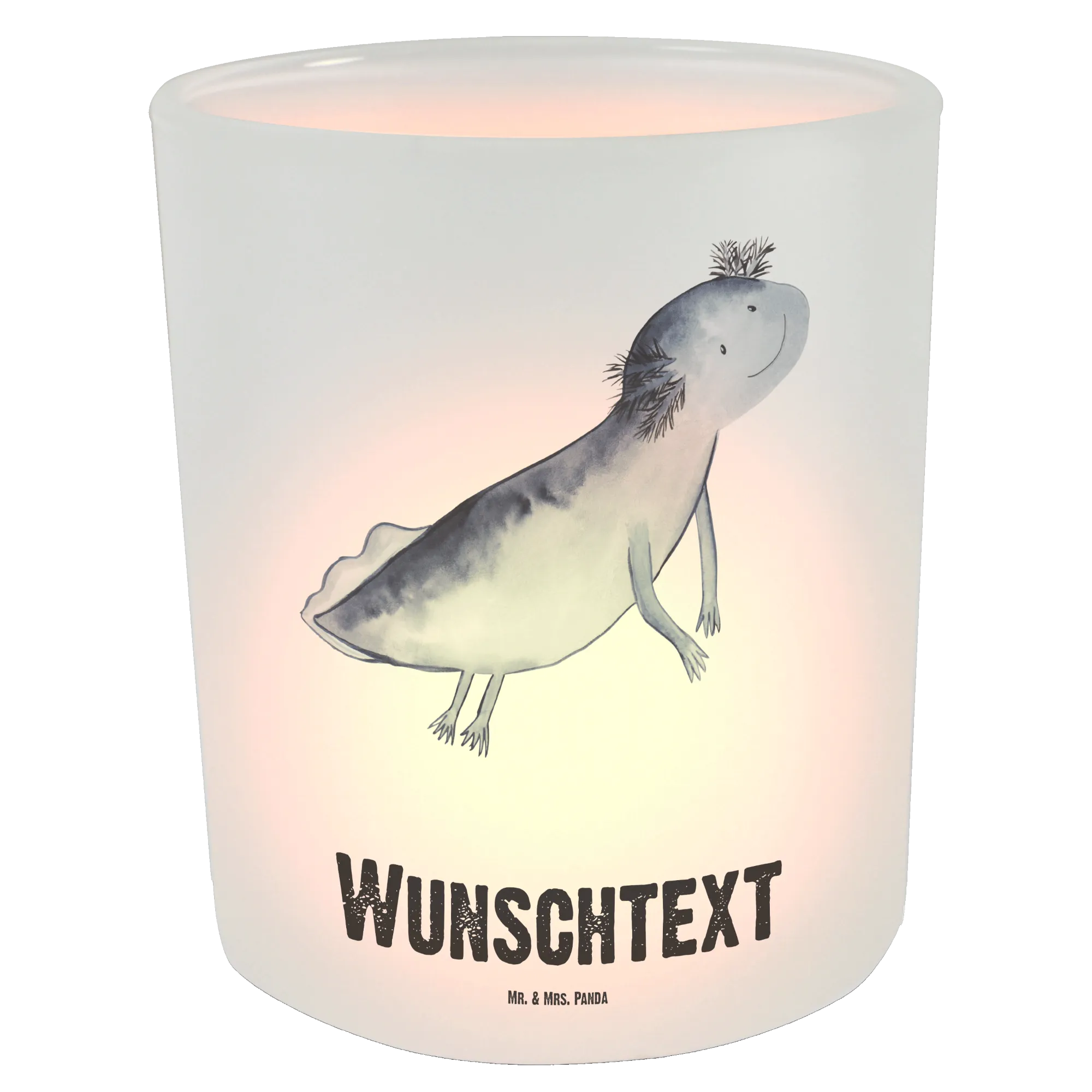 Entdecke unser personalisiertes Windlicht mit dem zauberhaften Motiv "Axolotl schwimmt" von Mr. & Mrs. Panda. Dieses liebevoll gestaltete Windlicht ist nicht nur ein Blickfang in jedem Raum, sondern auch das ideale Geschenk für Freunde und Familie.