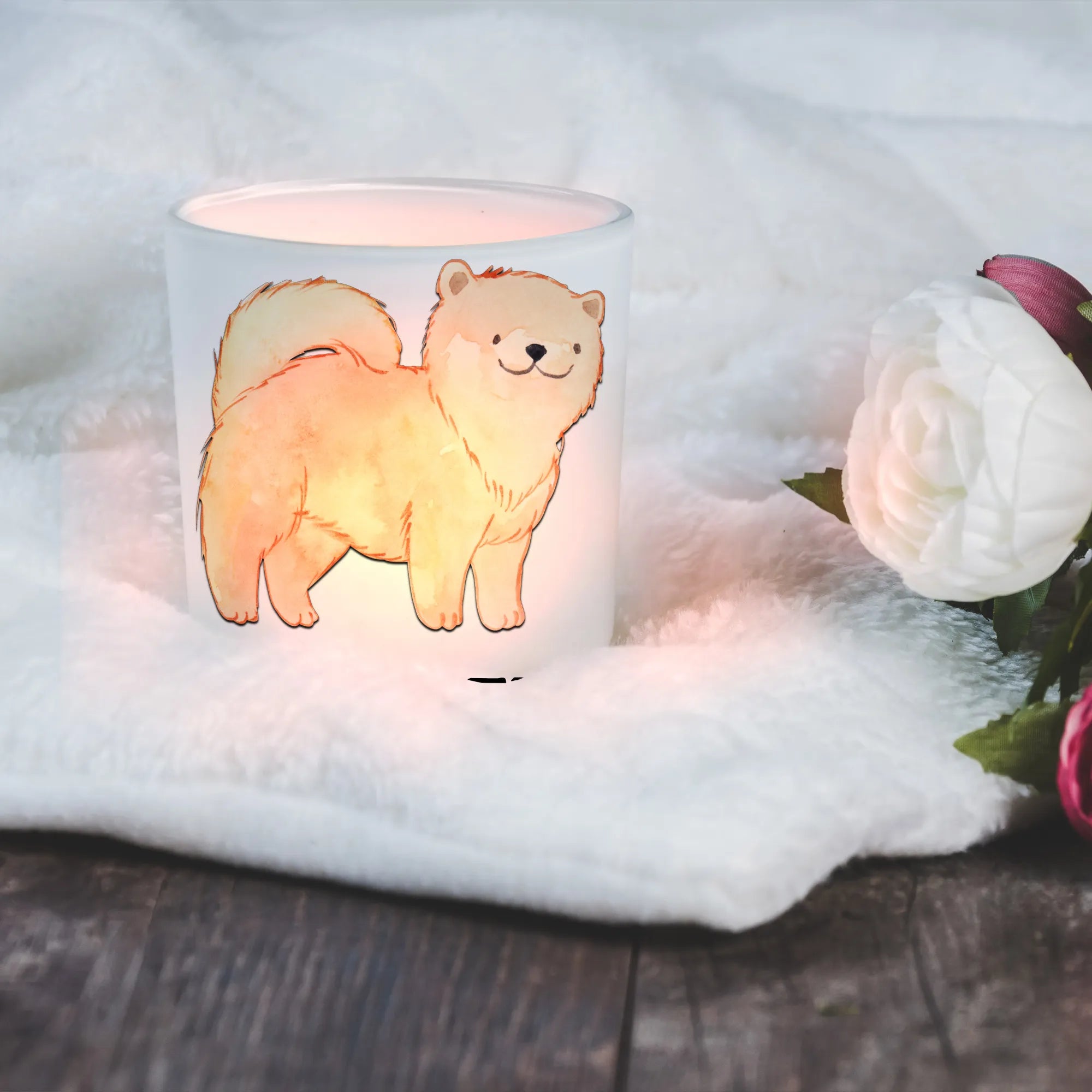 Der Chow-Chow mit dem sanften Lächeln, der knubbeligen Nase und den liebevollen Augen, erinnert uns daran, wie wichtig unsere pelzigen Freunde für unser Leben sind. Das Windlicht wird aus hochwertigem satinierter Glas gefertigt und hat eine ideale Größe von 70 mm x 80 mm. Es ist nicht nur ein echter Hingucker in jedem Zuhause, sondern sorgt auch für eine gemütliche und romantische Stimmung mit einem handelsüblichen Teelicht.