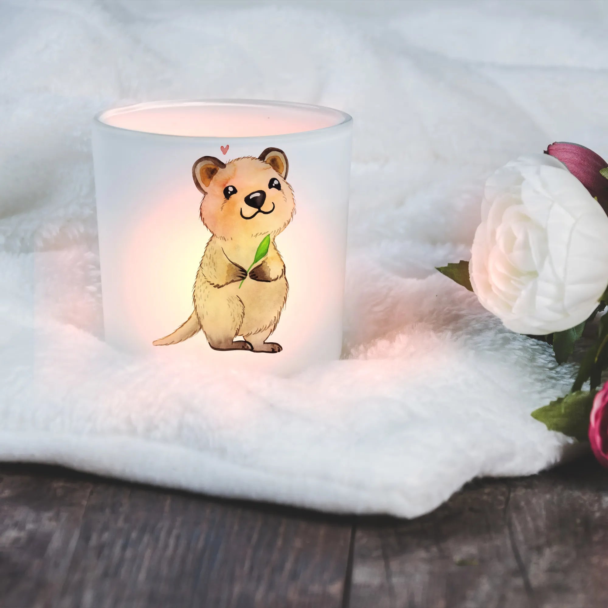 Das personalisierte Windlicht Quokka Happy von Mr. & Mrs. Panda ist das perfekte Geschenk für alle, die eine kleine Portion gute Laune und Gemütlichkeit in ihr Zuhause bringen wollen. Mit seinem niedlichen Quokka-Motiv zaubert es jedem ein Lächeln ins Gesicht und bietet eine wunderbare Möglichkeit, einen individuellen Touch zu verleihen.