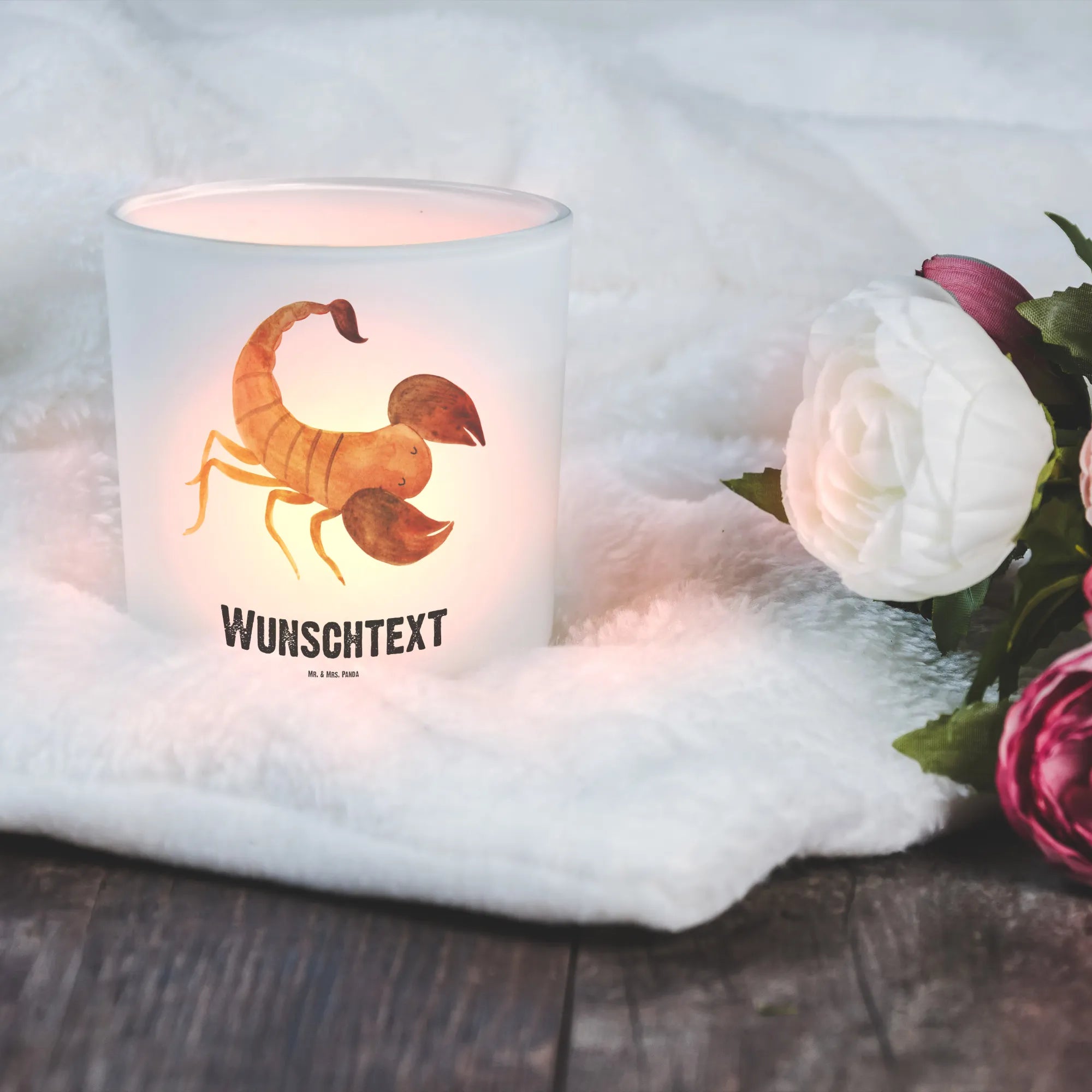 Das personalisierte Windlicht mit dem Sternzeichen Skorpion von Mr. & Mrs. Panda ist das perfekte Geschenk für all jene, die die Leidenschaft und Willenskraft eines Skorpions verkörpern. Dieses wunderschöne Windlicht aus satiniertem Glas lässt sich ganz individuell mit deinem Wunschtext oder Namen gestalten. Jeder Skorpion hat seine eigenen, einzigartigen Eigenschaften, und dieses Windlicht bringt diese zum Ausdruck.