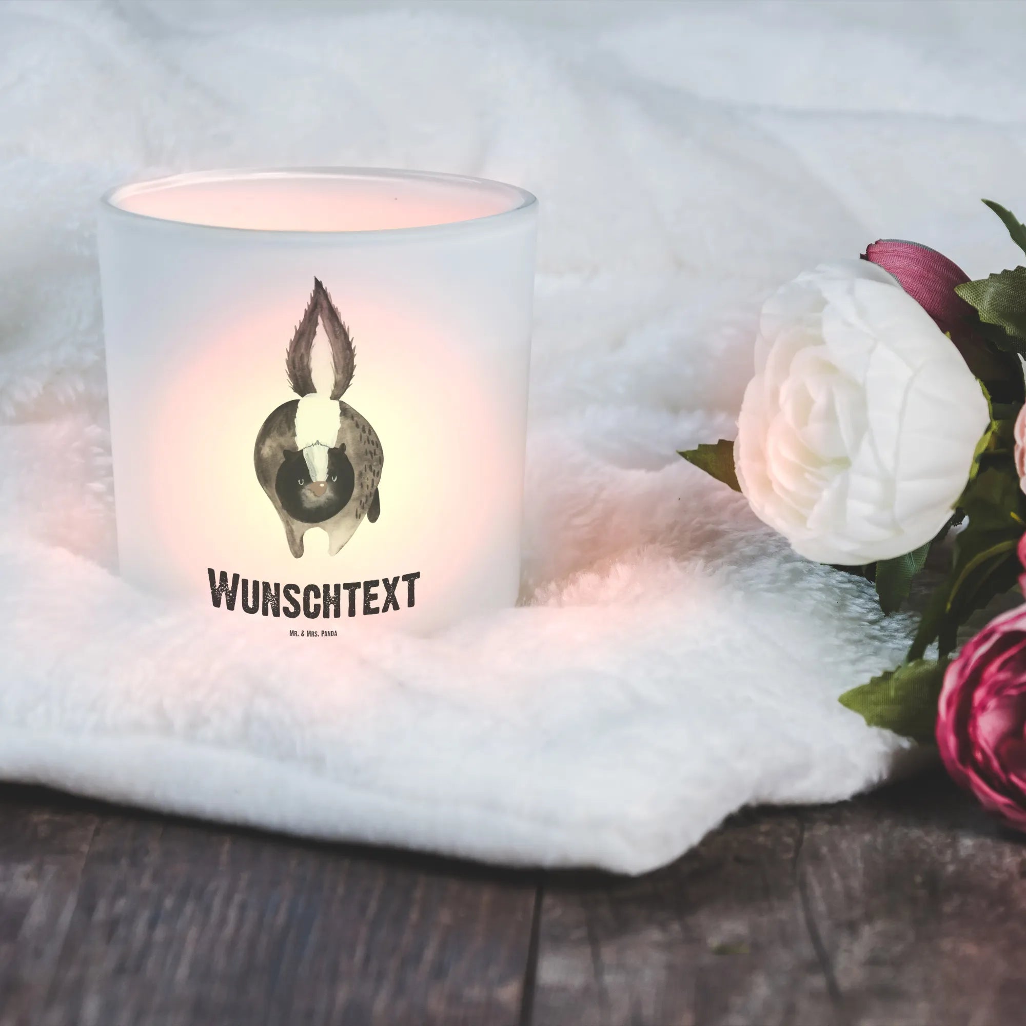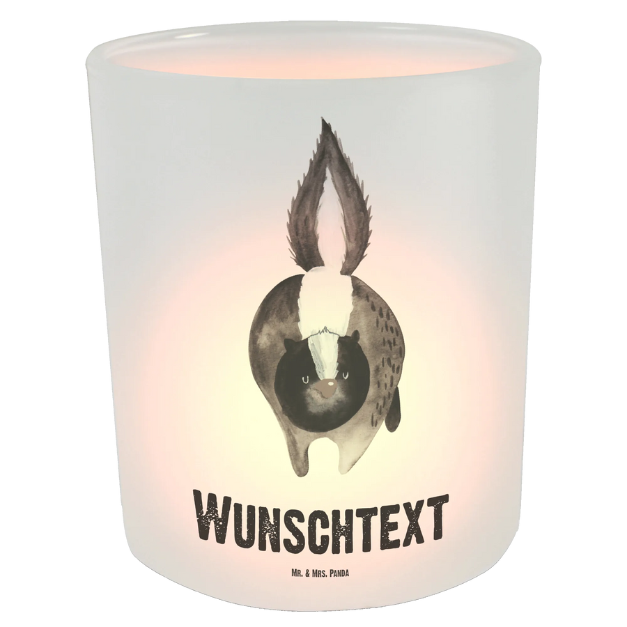 Das personalisierte Windlicht "Stinktier Angriff" von Mr. & Mrs. Panda ist das perfekte Geschenk für all jene, die das Besondere lieben. Mit einem niedlichen Stinktier, das sich wütend aufbaut und seinen buschigen Schwanz in die Höhe hält, bringt dieses Windlicht jede Umgebung zum Strahlen. Ob zum Geburtstag, als Hochzeitsgeschenk oder einfach nur so für einen lieben Menschen – dieses Windlicht ist immer eine tolle Wahl.