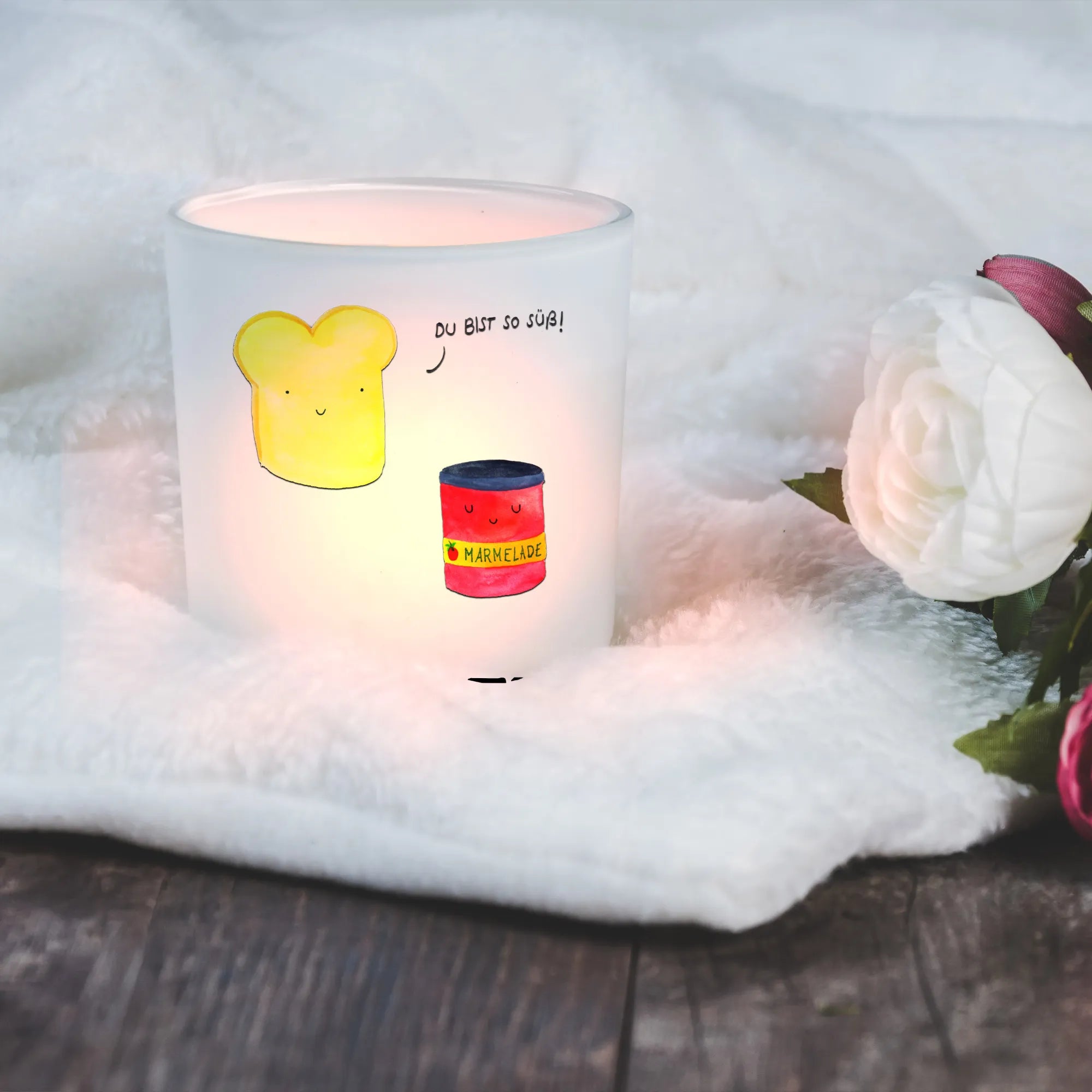 Entdecke die Magie des personalisierten Windlichts mit dem süßen Motiv Toast & Marmelade aus der Small World Kollektion von Mr. & Mrs. Panda!
