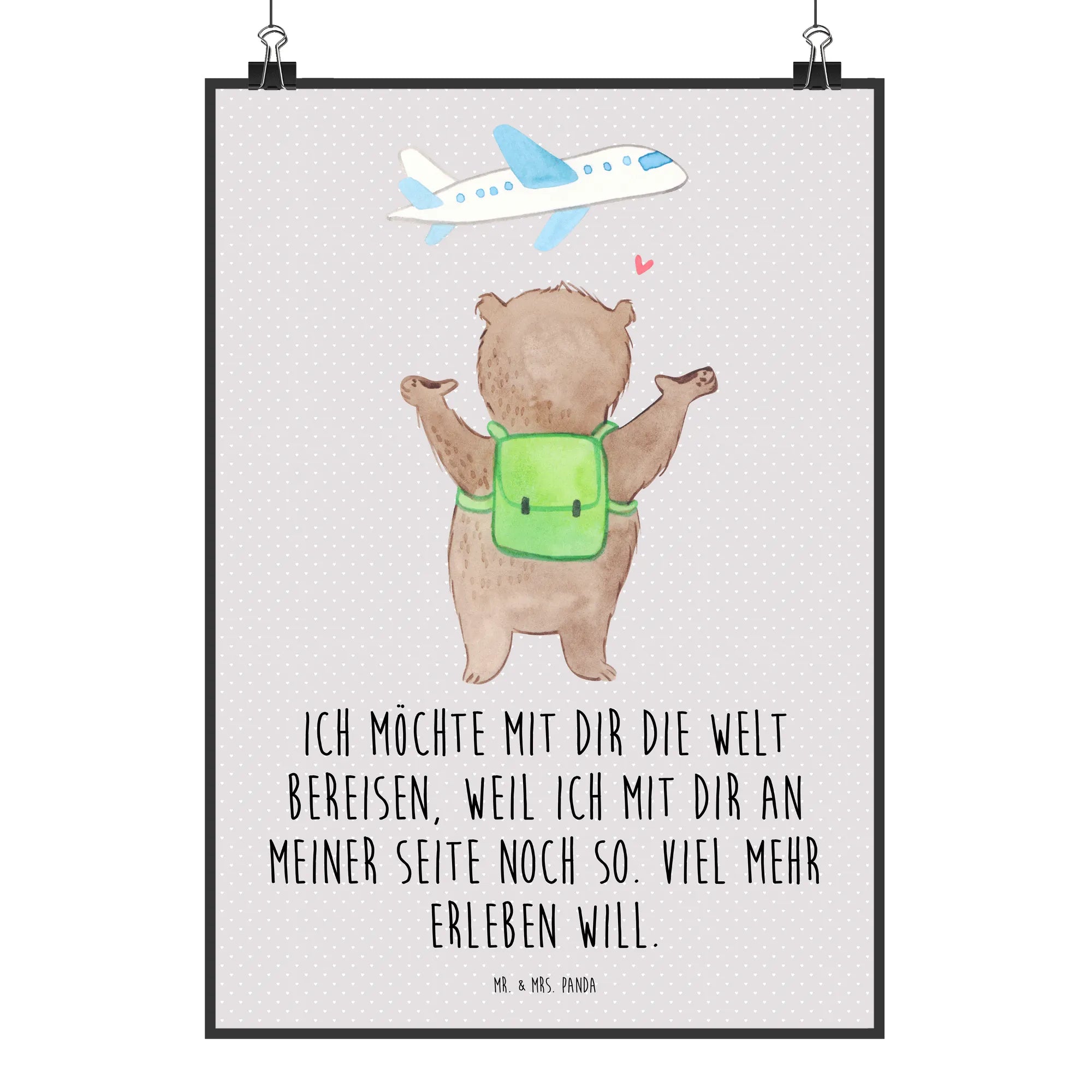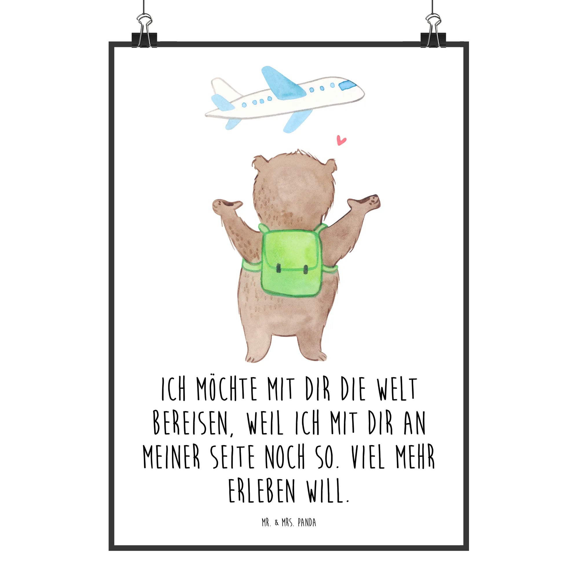Poster Bär Flugzeug - DIN A0 - Weiß