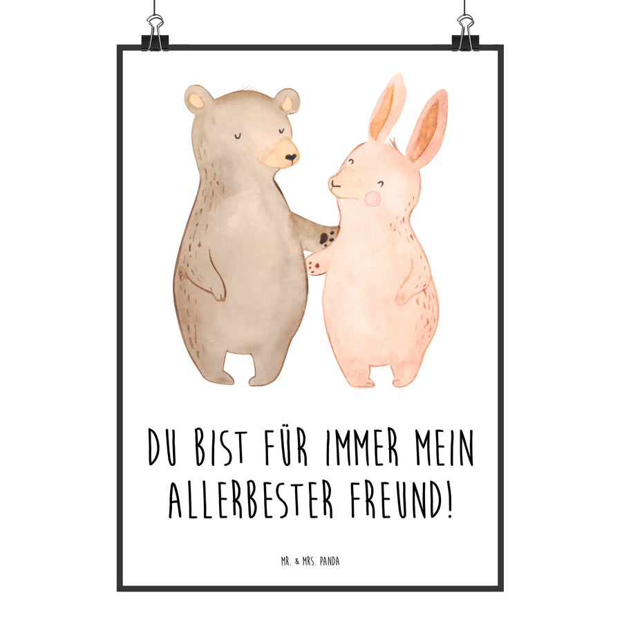 Poster Bär Hase Umarmen - DIN A0 - mit Spruch - Weiß
