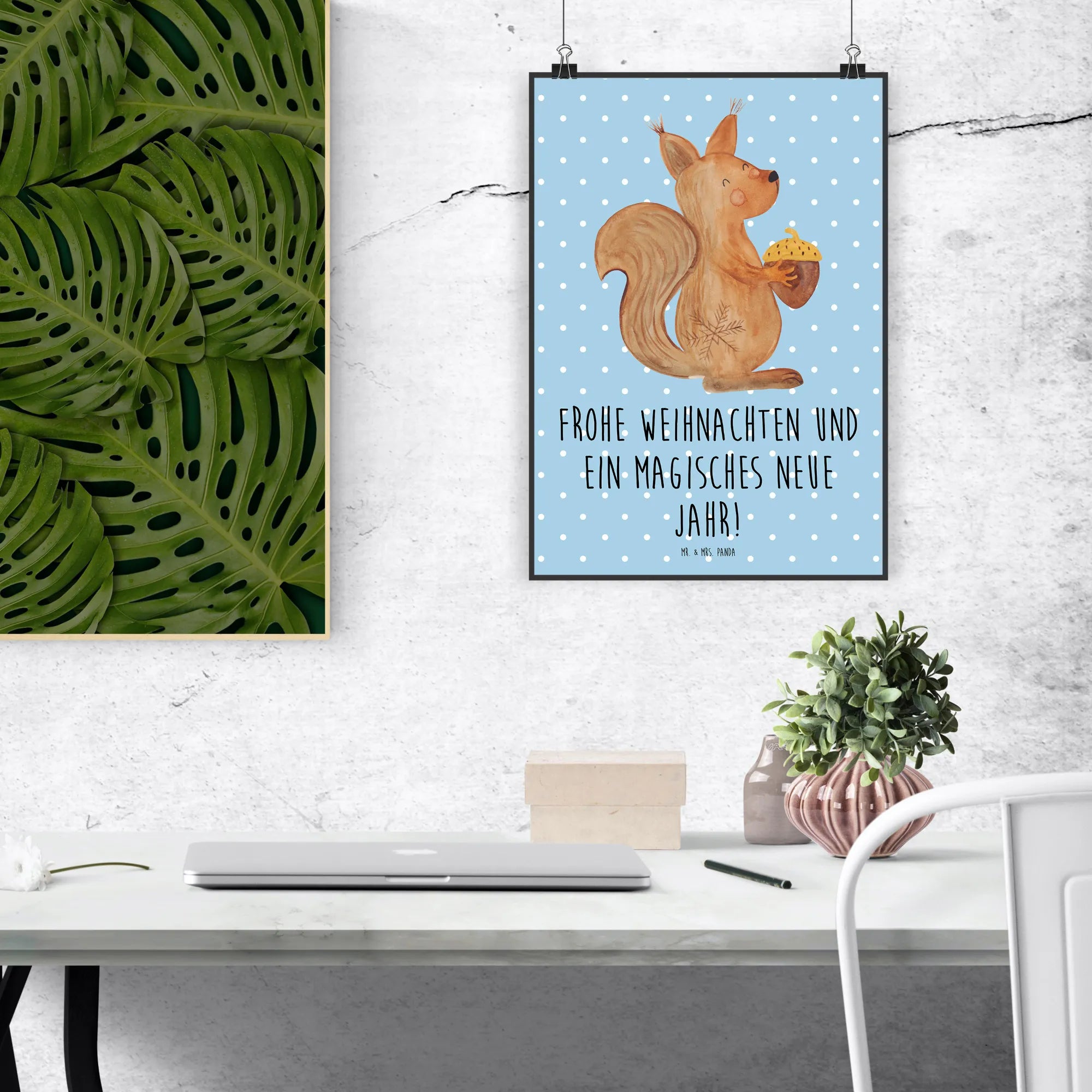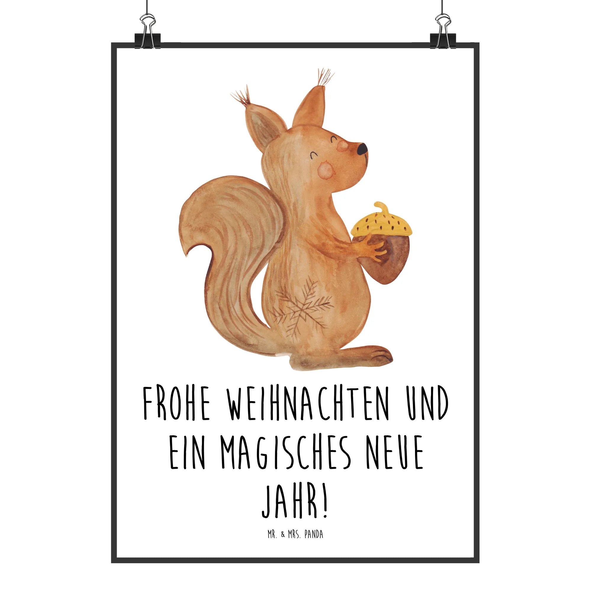 Entdecke die Freude des Schenkens mit einem liebevollen Weihnachtsgruß: "Frohe Weihnachten und ein magisches neues Jahr!" Lass dieses Eichhörnchen dein Zuhause in ein winterliches Märchen verwandeln! Hol dir jetzt die Winter Kollektion von Mr. & Mrs. Panda nach Hause und genieße die schönsten Momente der Weihnachtszeit mit unserem himmlischen Poster.