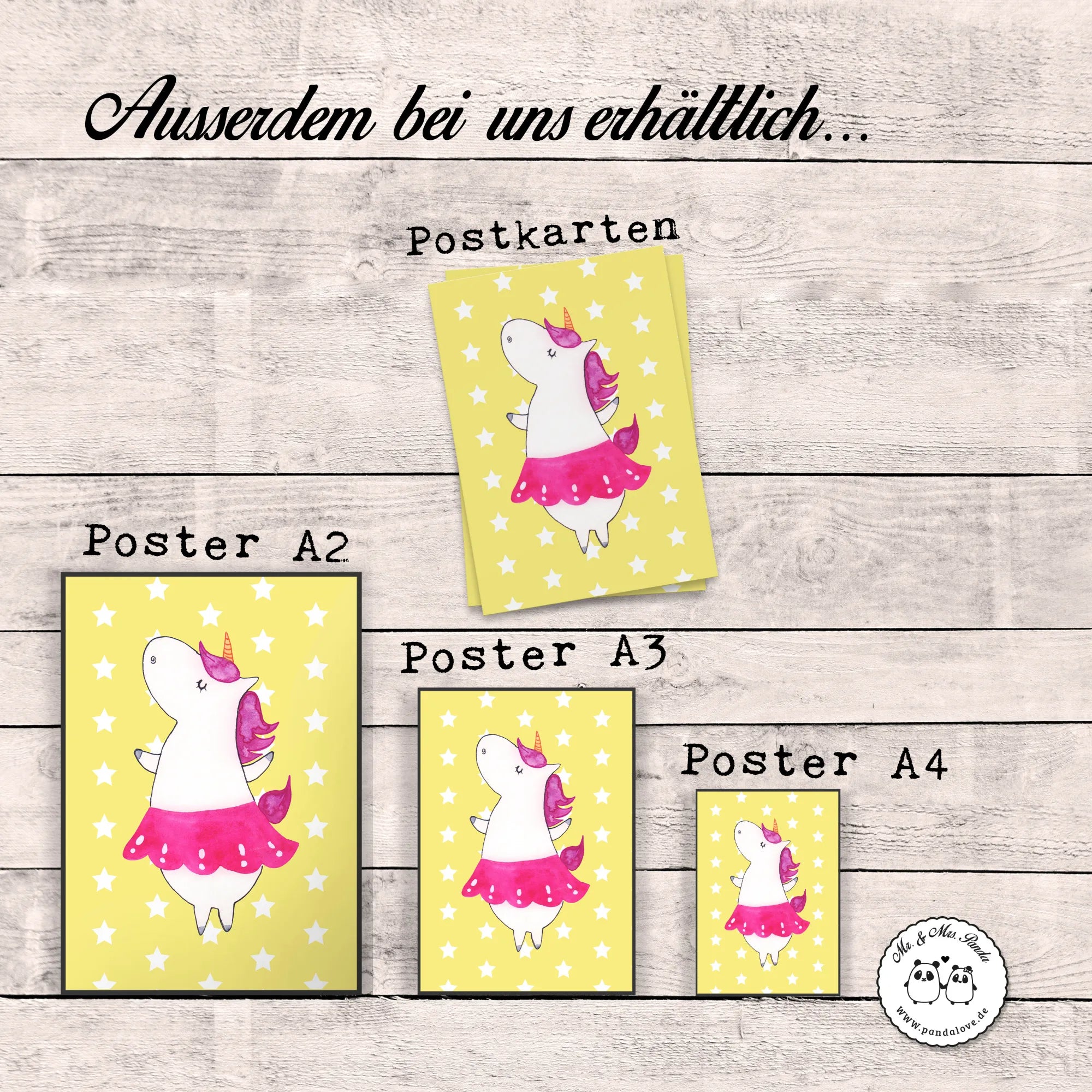 Das wunderschöne Poster "Einhorn Ballerina" aus der Einhorn-Kollektion von Mr. & Mrs. Panda ist das perfekte Geschenk für kleine Tänzerinnen und Einhorn-Liebhaber! Mit bunten Farben und einem bezaubernden Motiv einer Ballerina, die in einem Tütü tanzt, bringt es Lebensfreude in jedes Kinderzimmer.