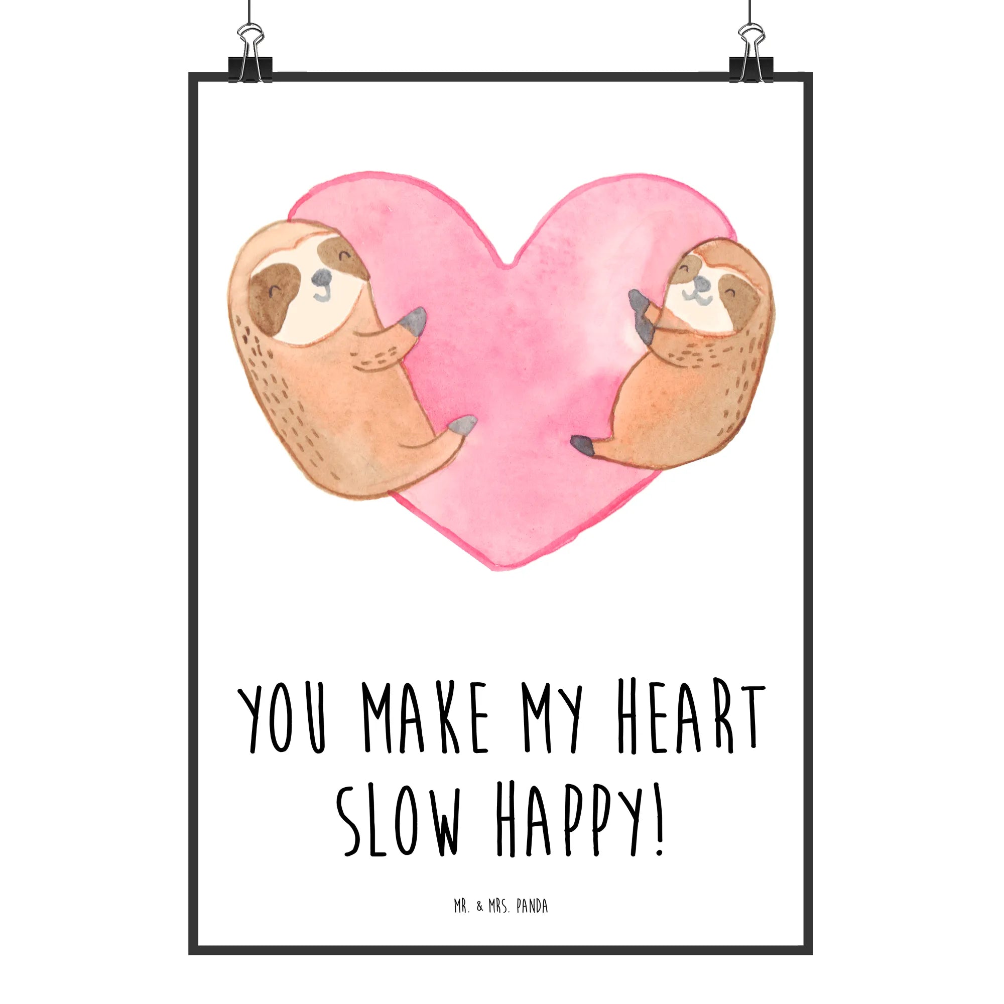 Die Faultiere im Herzen kommen einem sofort näher. Eingehüllt in sanft rosa Aquarellfarben, kuscheln sie innig und zeigen uns, wie wichtig es ist, im Moment zu verweilen. Ihr ruhiger Ausdruck und die liebevollen Haltungen sind Lebensfreude pur. 'You make my heart slow happy!' – eine Botschaft für alle, die die Ruhe in der Zweisamkeit lieben. Perfekt als Valentinstagsgeschenk oder zum Hochzeitstag! Es bringt nicht nur ein Lächeln in das Gesicht, sondern wärmt auch das Herz.