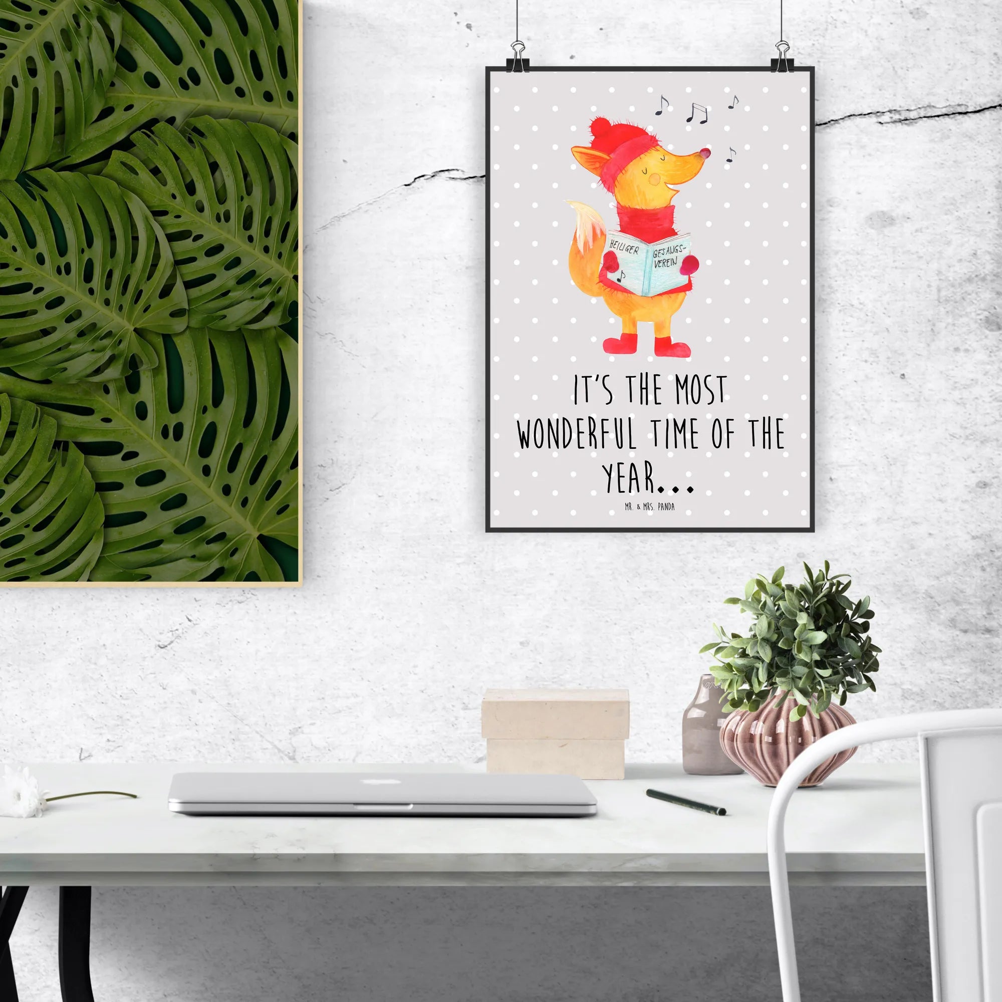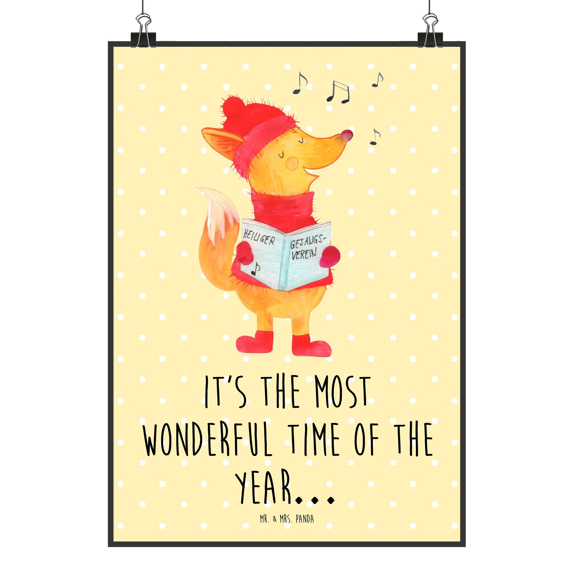 Bist du auf der Suche nach dem perfekten Geschenk für die Winterzeit? Unser wunderschönes und edles Poster "Fuchs Sänger" aus der Winter Kollektion von Mr. & Mrs. Panda könnte genau das sein, was du brauchst! Die festliche Atmosphäre wird durch den fröhlich aussehenden Fuchs, der mit einem Liederbuch singt, perfekt eingefangen.