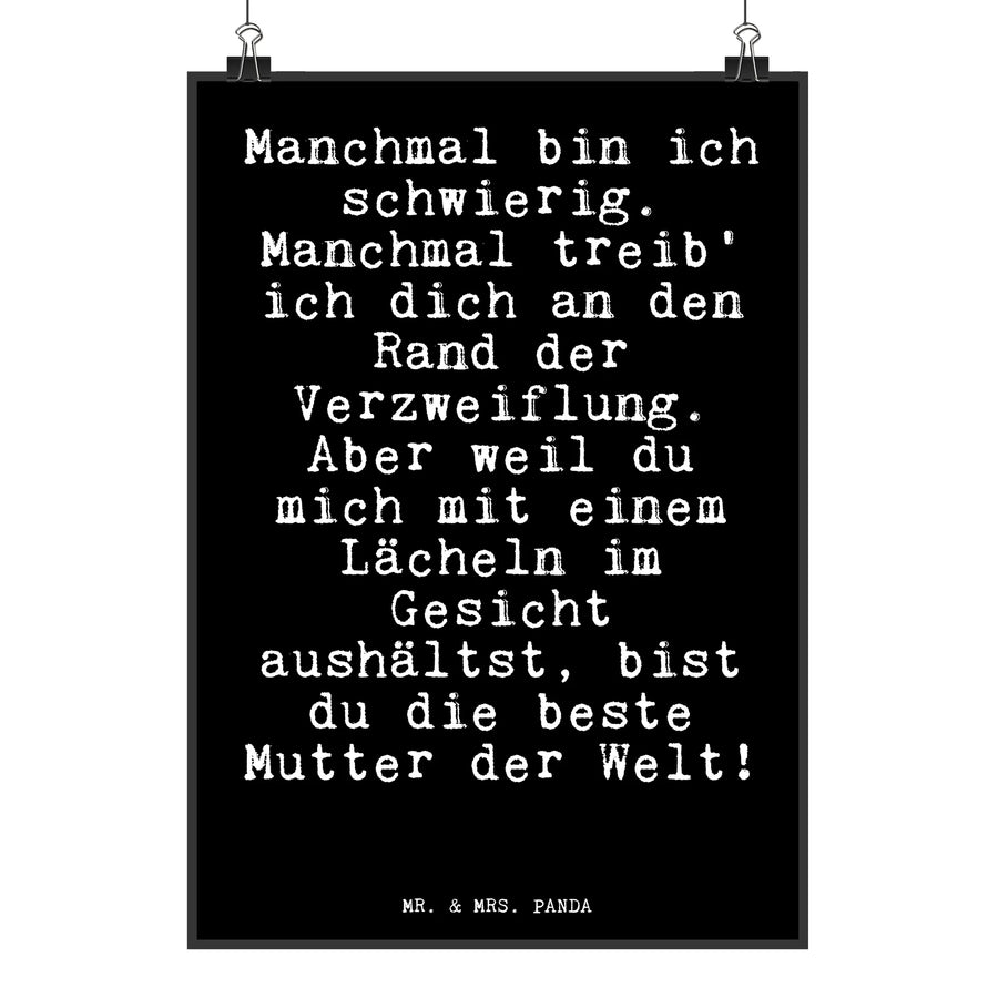 Poster Fun Talk Manchmal bin ich schwierig. Manchmal treib' ich dich an den Rand der Verzweiflung. Aber weil du mich mit einem Lächeln im Gesicht aushältst, bist du die beste Mutter der Welt! - DIN A3