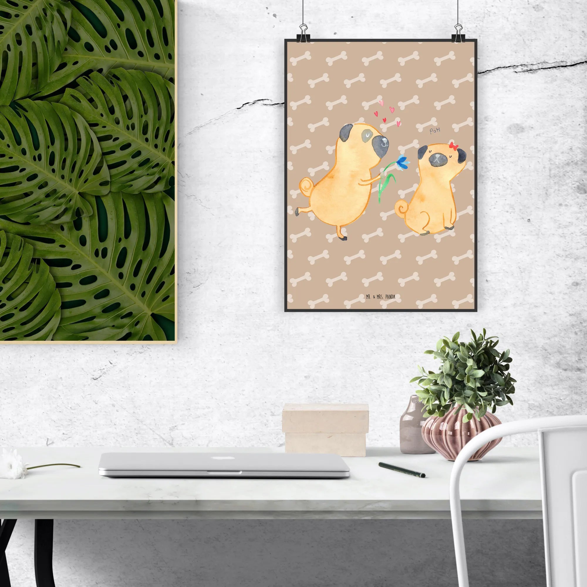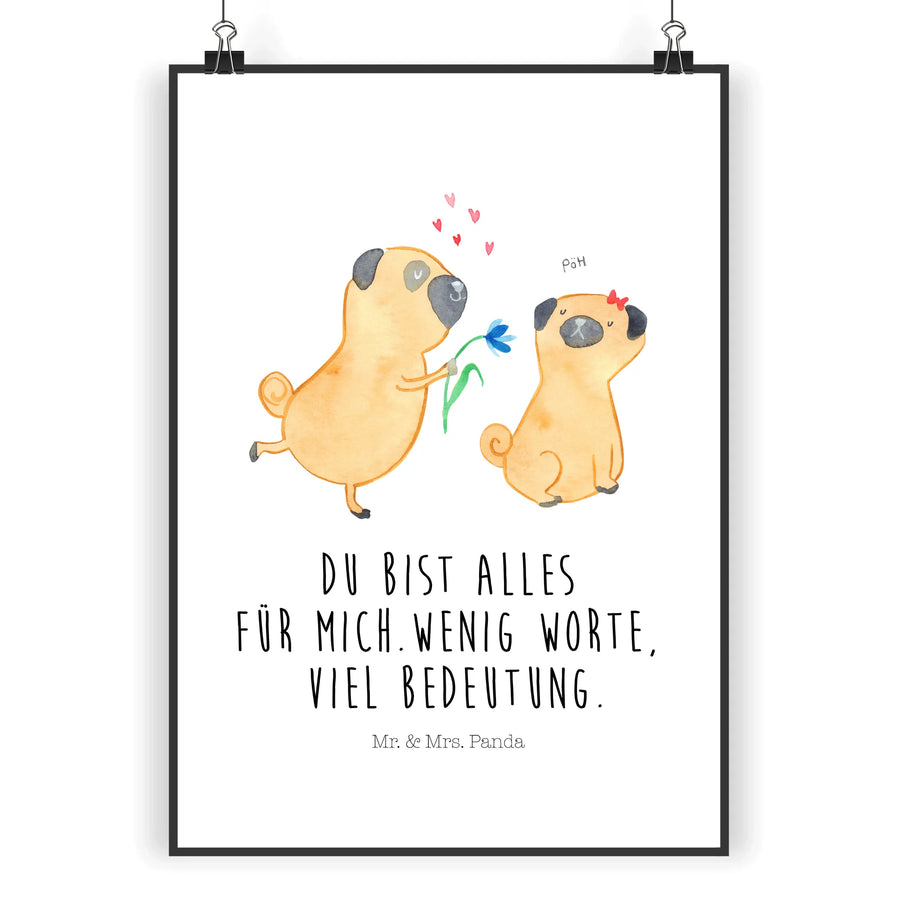 Poster Mops Verliebt - DIN A0 - mit Spruch - Weiß