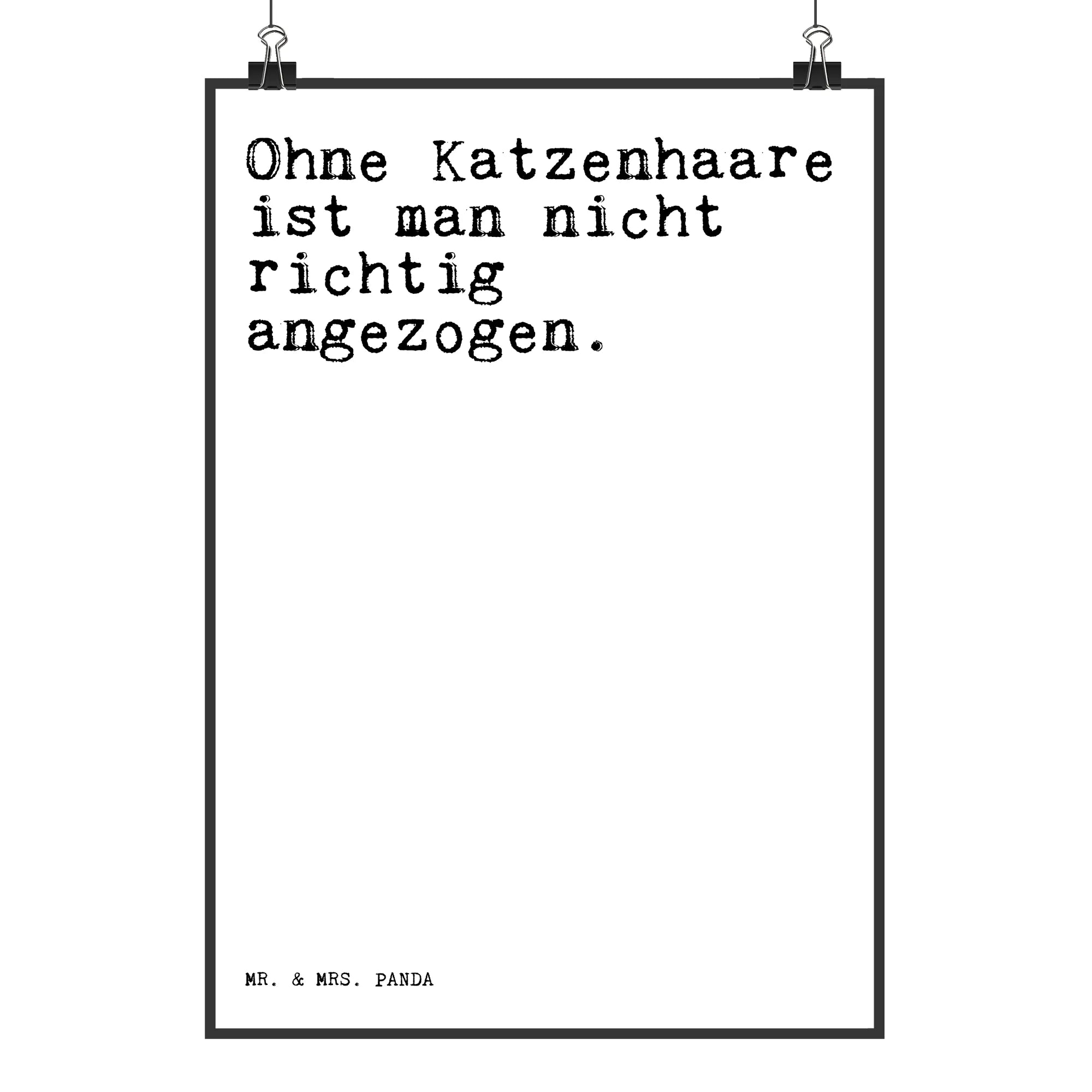 Willkommen in der zauberhaften Welt von Mr. & Mrs. Panda! Unser handgemaltes Poster mit dem charmanten Spruch "Ohne Katzenhaare ist man nicht richtig angezogen" ist das perfekte Geschenk für alle Katzenliebhaber. Egal ob für Deine beste Freundin, das Familienmitglied oder als Dekoration in Deinem eigenen Zuhause – dieses Poster bringt nicht nur Freude, sondern auch einen Hauch von Witz in jede Wohnung.
