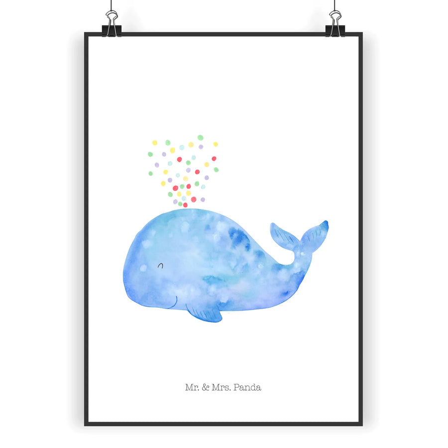 Die Kombination aus dem liebevoll gestalteten Wal und den festlichen Konfetti-Elementen macht es zu einem idealen Geschenk für Freunde und Familie, die das Meer lieben. Wenn du also auf der Suche nach einer besonderen Wanddekoration oder dem perfekten Geschenk für einen Meerestiere-Fan bist, ist dieses Poster eine entzückende Wahl!