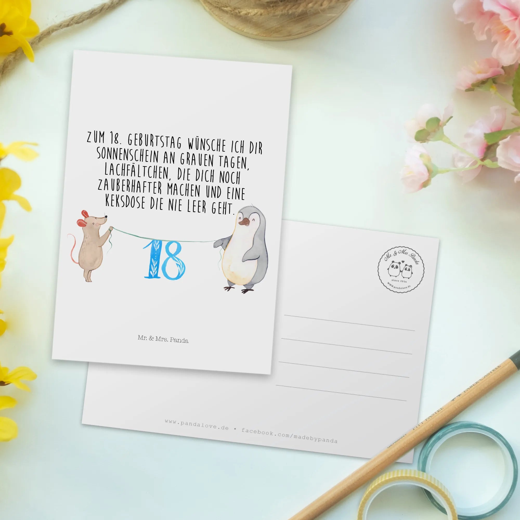 Postkarte 18. Geburtstag Maus Pinguin - mit Spruch