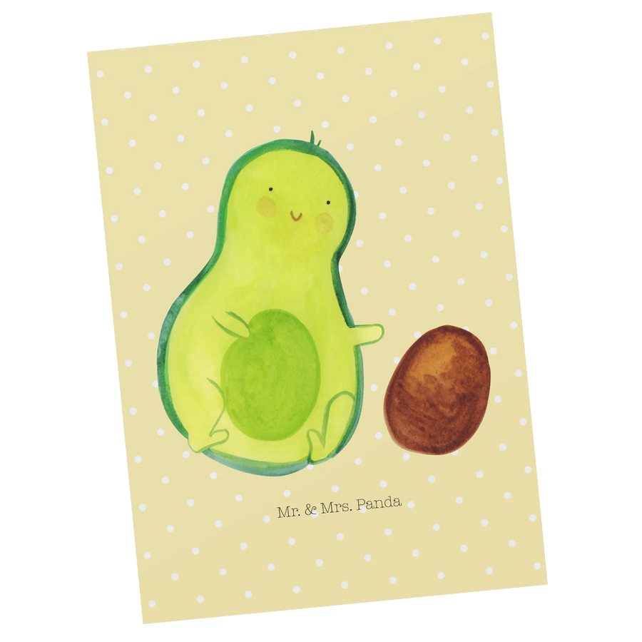 Postkarte Avocado Kern rollt - ohne Spruch - Gelb Pastell