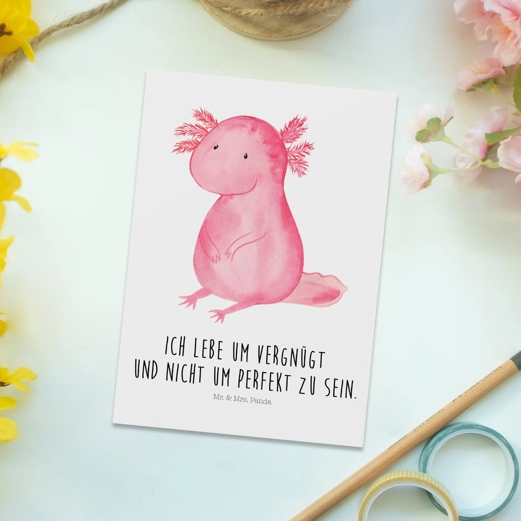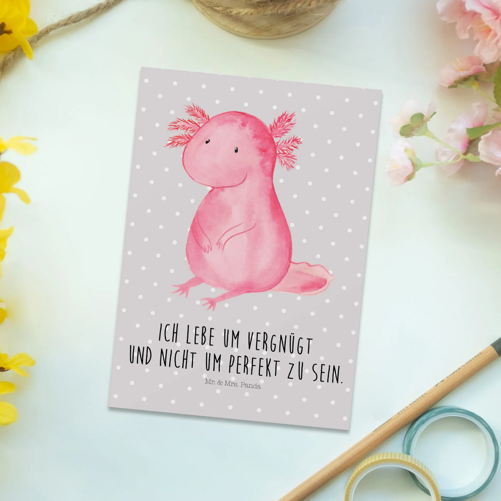 Verschenke Lebensfreude mit einem Augenzwinkern – mit der Axolotl-Postkarte von Mr. & Mrs. Panda.