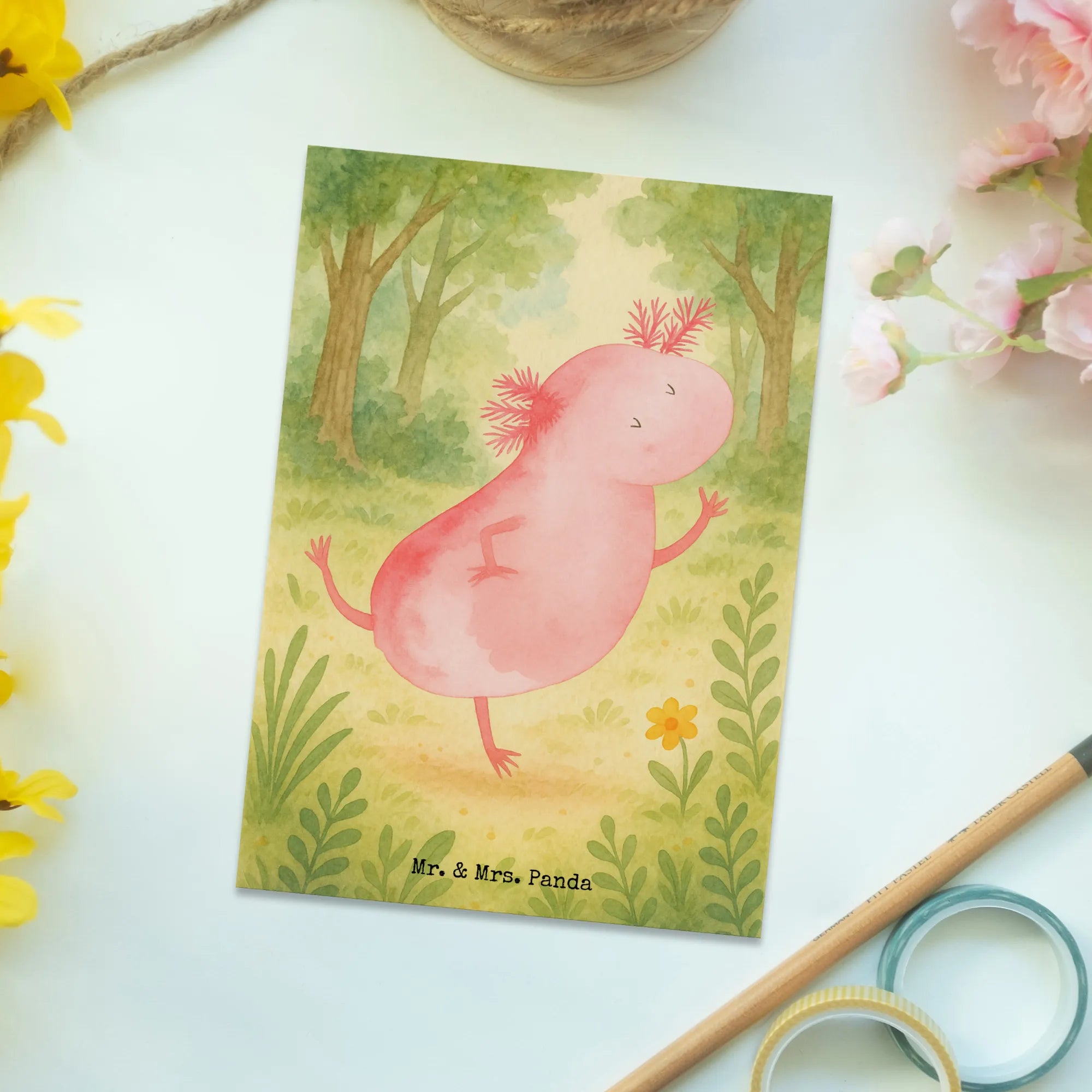 Postkarte Axolotl Tanzen Design