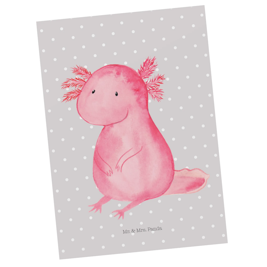 Die Postkarte mit dem entzückenden Axolotl-Motiv von Mr. & Mrs. Panda ist das perfekte Geschenk für all die besonderen Momente im Leben! Ob Geburtstag, Hochzeit oder einfach nur als liebevolle Geste, diese Karte bringt garantiert ein Lächeln auf das Gesicht des Beschenkten.