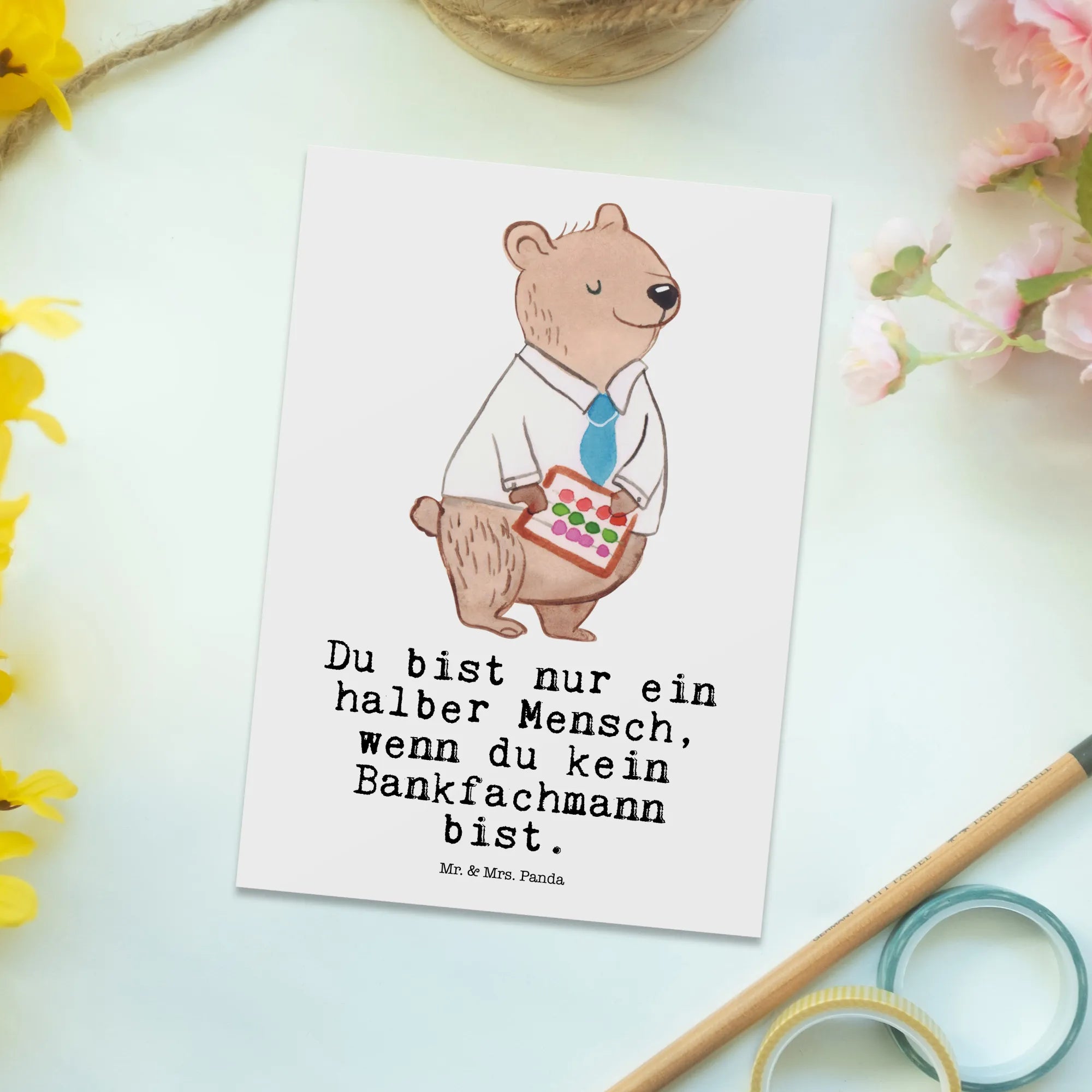 Postkarte Bankfachmann mit Herz - mit Spruch - Weiß