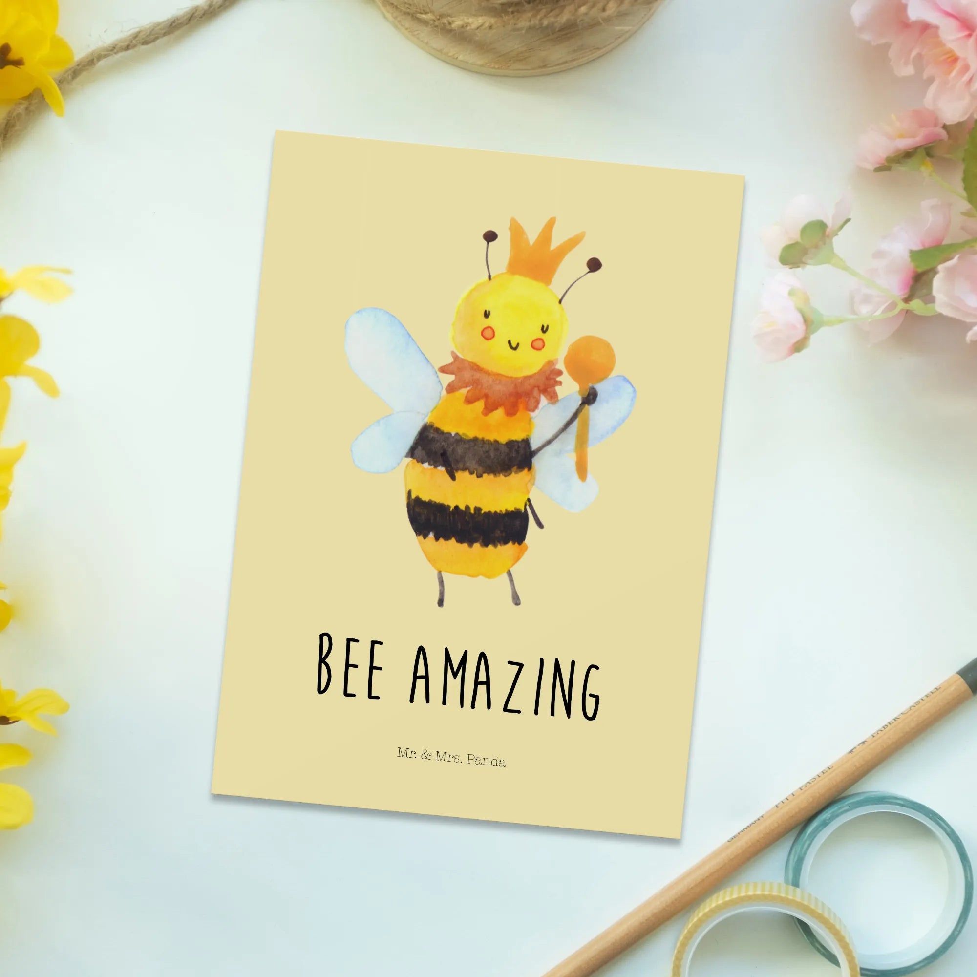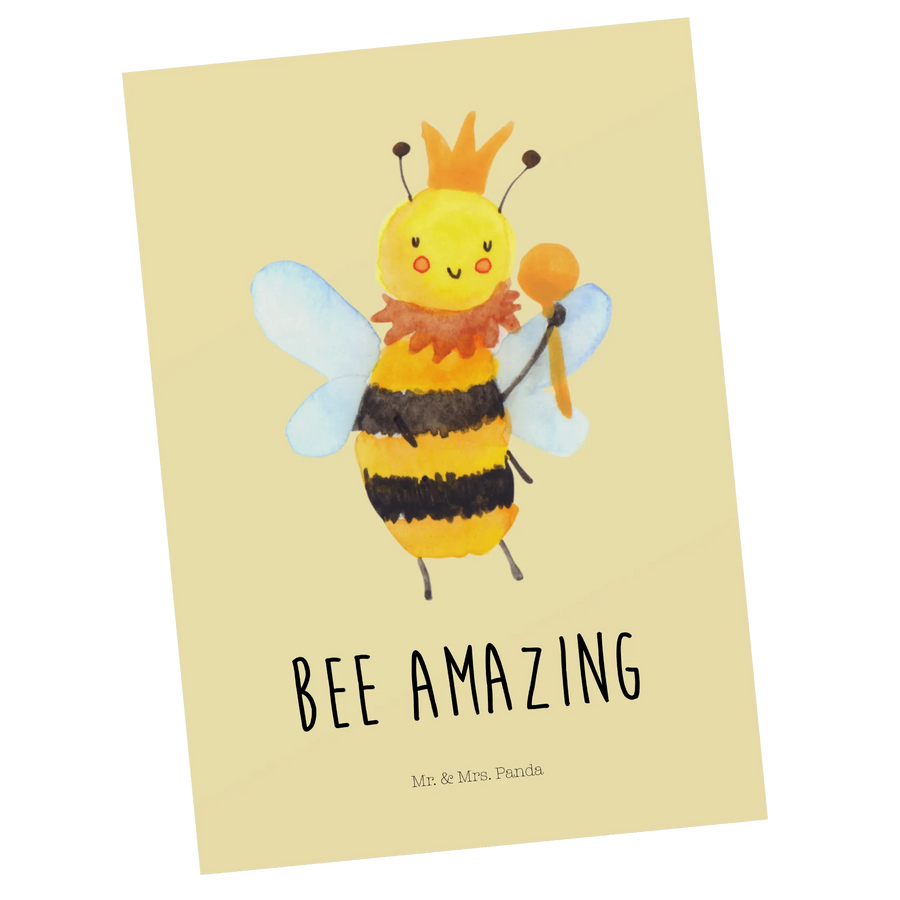 Diese liebevoll gestaltete Postkarte aus der Bienen-Kollektion von Mr. & Mrs. Panda zeigt eine königliche Biene mit Krone und Zepter und den fröhlichen Spruch „Bee amazing“. Das pastellgelbe Design bringt sofort gute Laune und ist ideal, um jemandem zu sagen: Du bist etwas Besonderes.