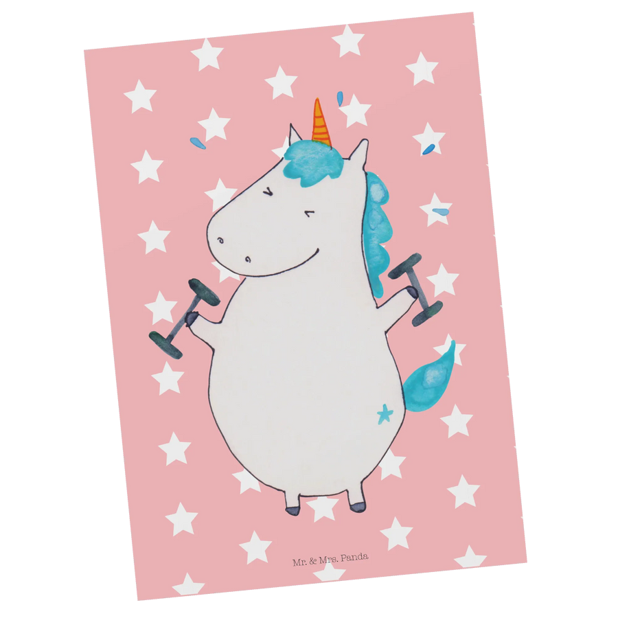 Die liebevoll gestaltete Postkarte Einhorn Fitness von Mr. & Mrs. Panda ist das perfekte Geschenk für alle Fitness-Fans und Einhorn-Liebhaber!