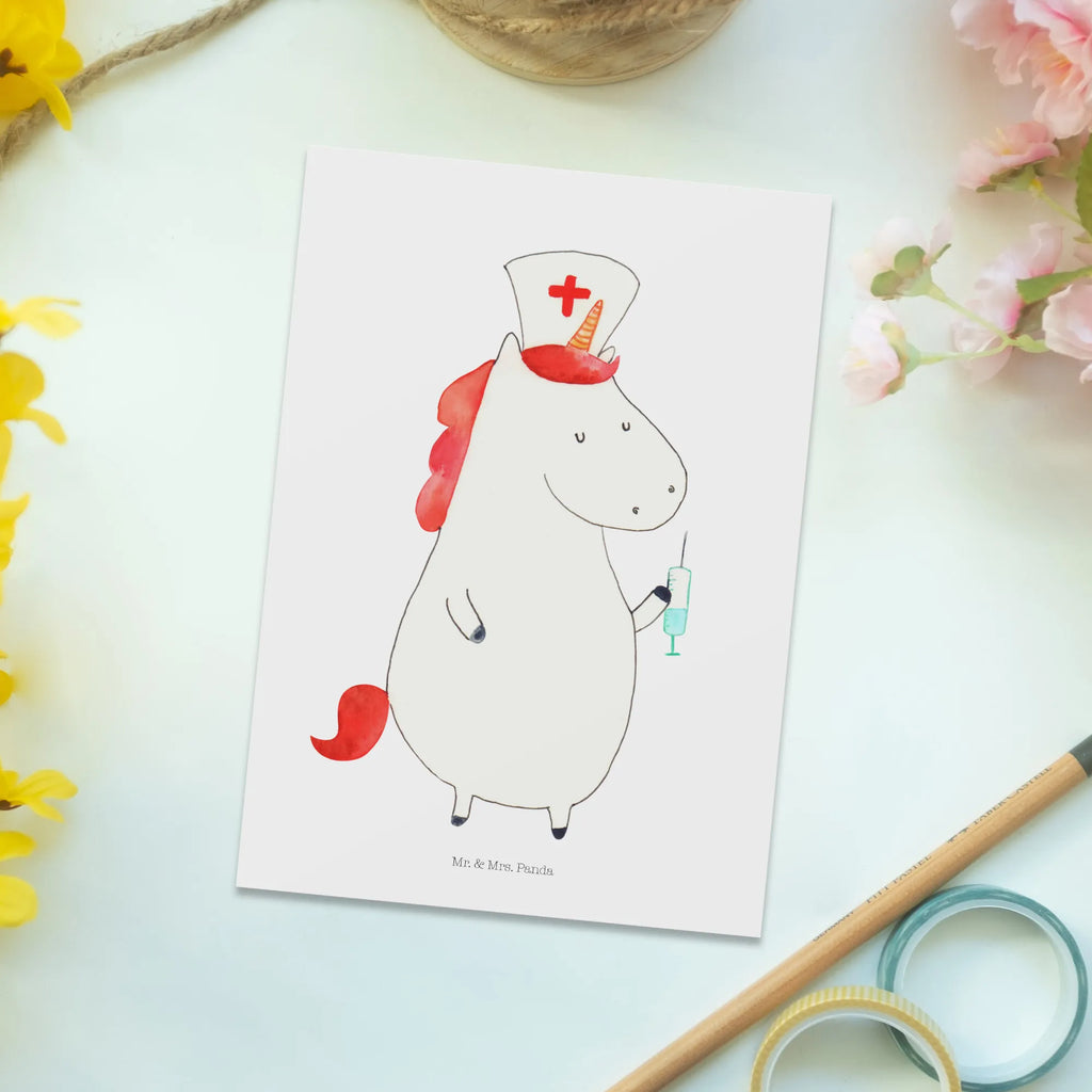Postkarte Einhorn Krankenschwester - mit Spruch - Weiß